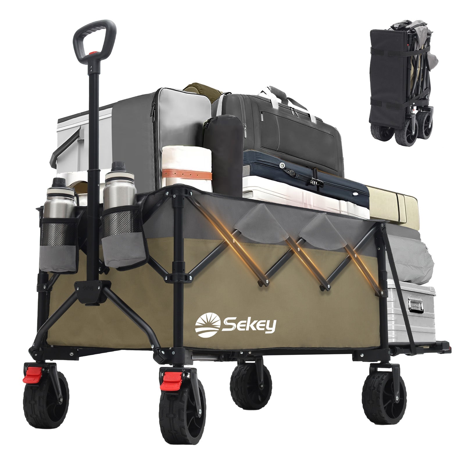 Der verstellbare Griff mit Kippfunktion und die drehbaren Vorderräder bieten maximalen Komfort. Der robuste Rahmen und das strapazierfähige Material machen den Wagen extrem langlebig, mit einer maximalen Tragkraft von 120 kg.