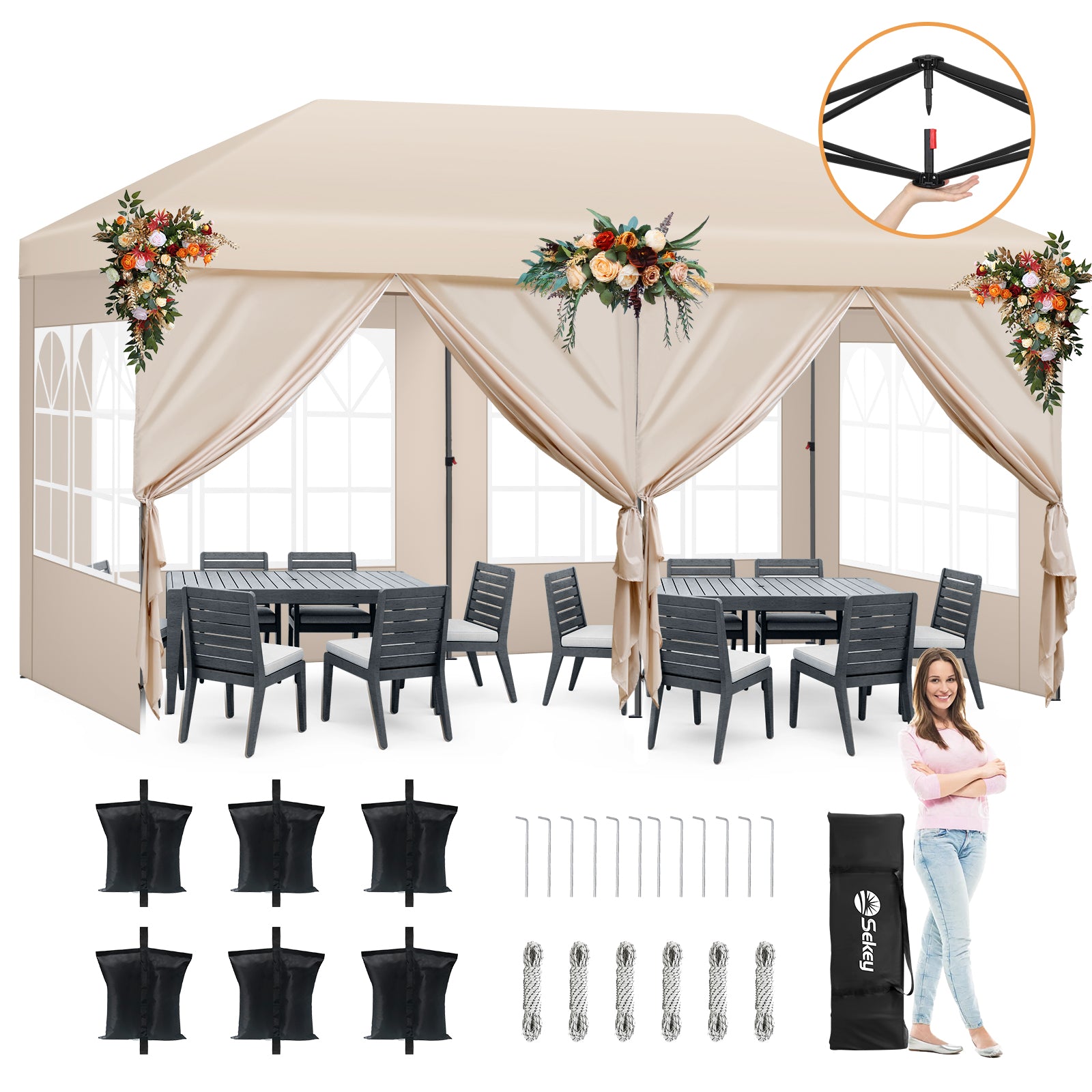 Flexible Privatsphäre: Ausgestattet mit 6 Seitenteilen, darunter 4 mit Fenstern für gute Sicht und Belüftung, sowie 2 mit Reißverschluss für einfachen Zugang und flexible Nutzung. Schützt die Privatsphäre und bewahrt die Außenansicht, um verschiedene Bedürfnisse zu erfüllen.