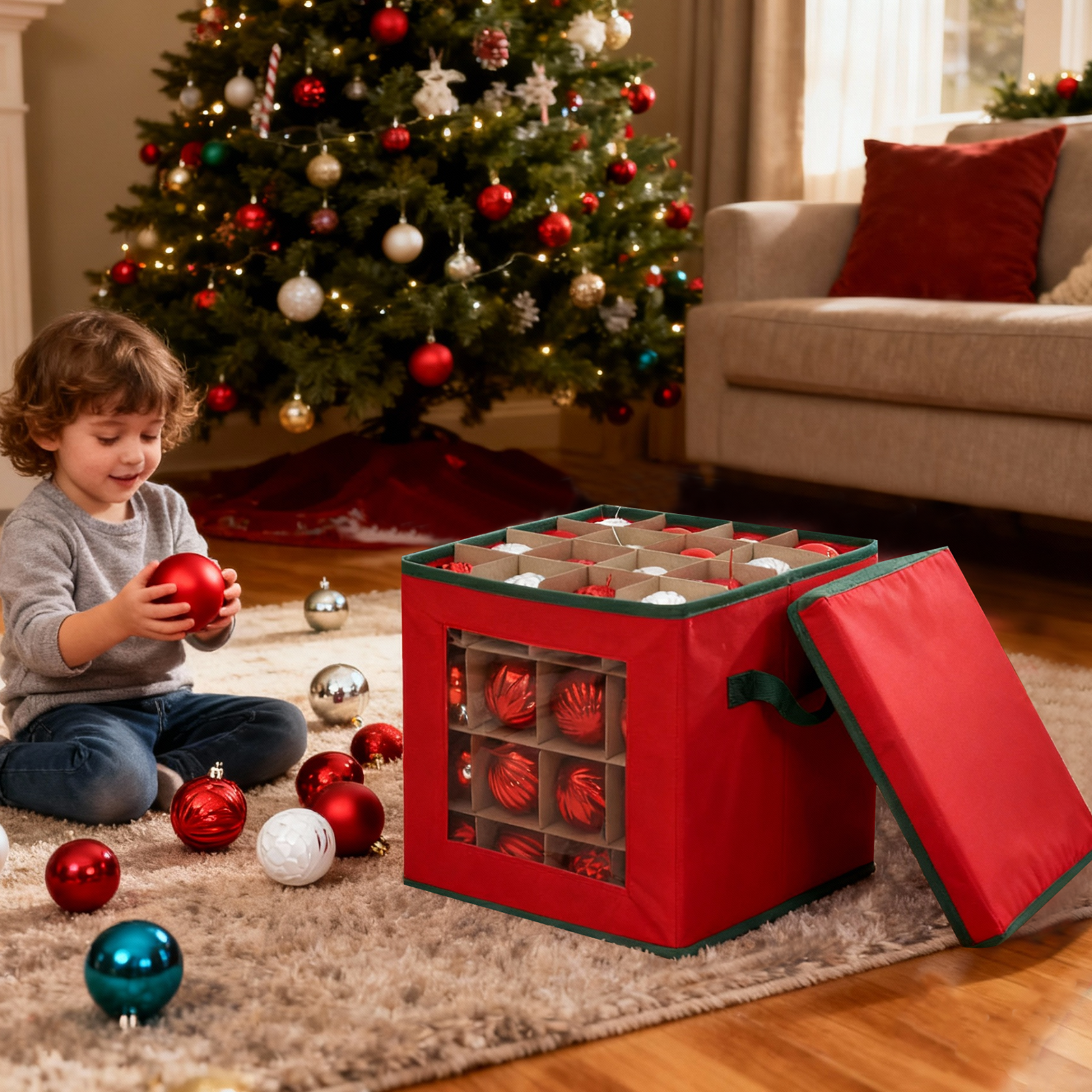 Die stabile und praktische Box sorgt dafür, dass Ihre Weihnachtskugeln, Glöckchen und andere Dekoration sicher und übersichtlich gelagert werden.