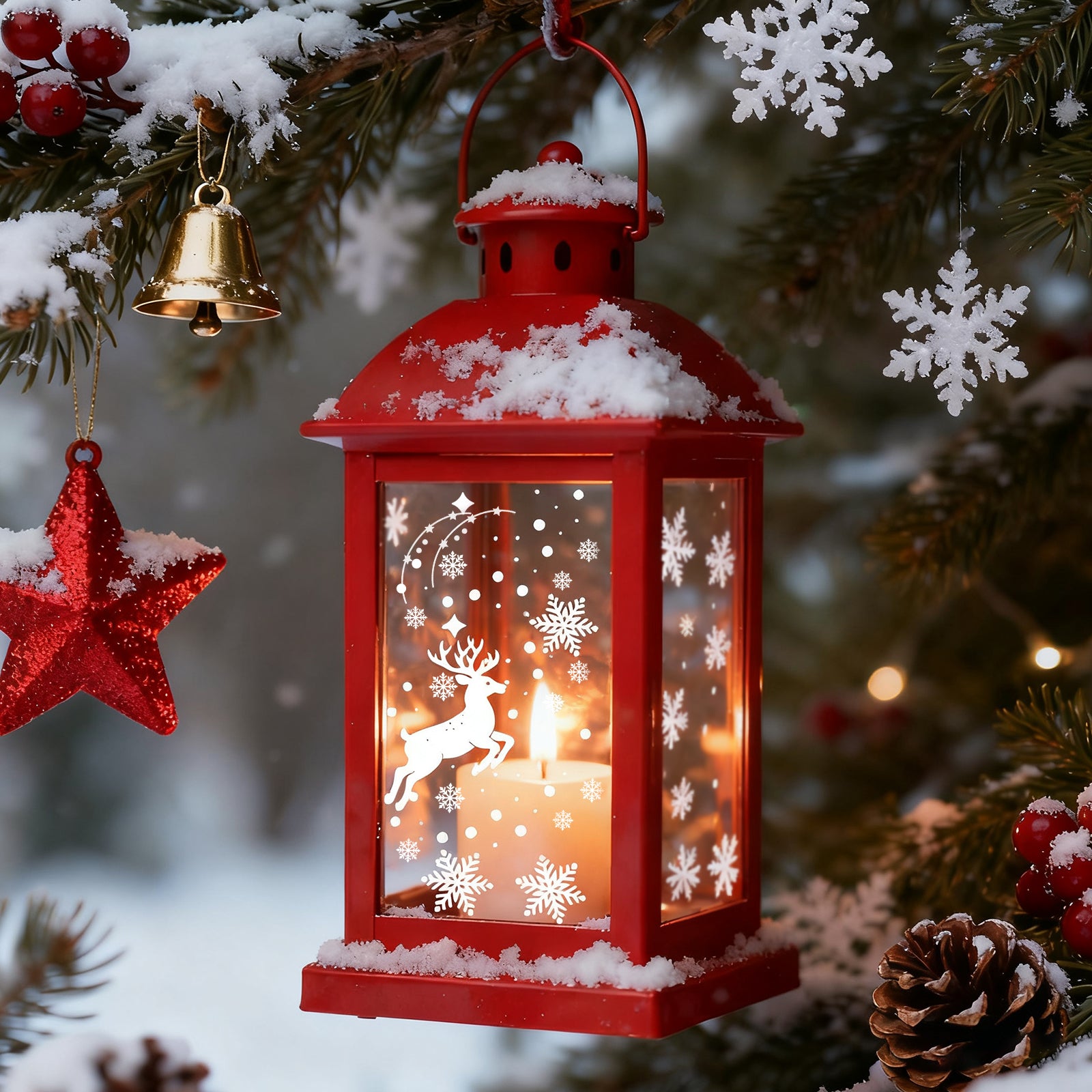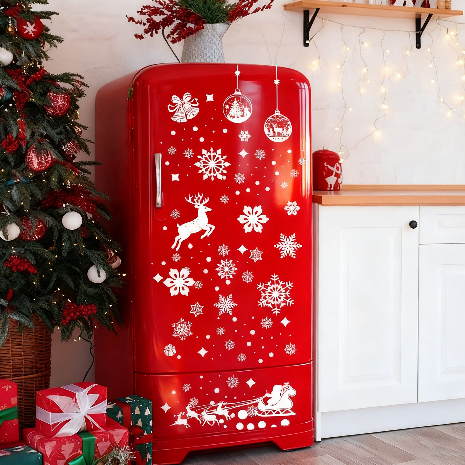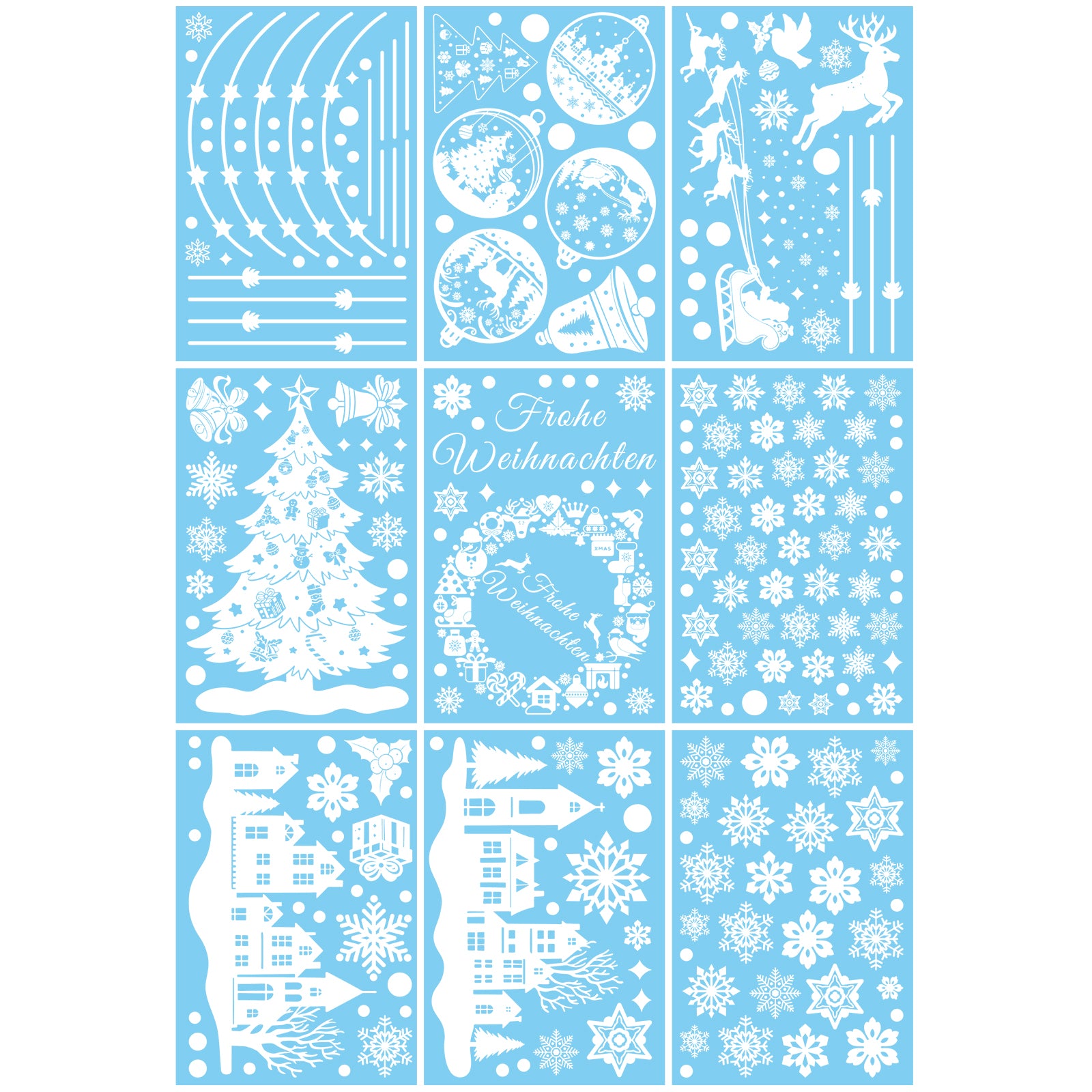 Featuring motifs such as fir trees , snowflakes , houses , reindeer and Christmas baubles , these stickers quickly bring winter charm to your home.