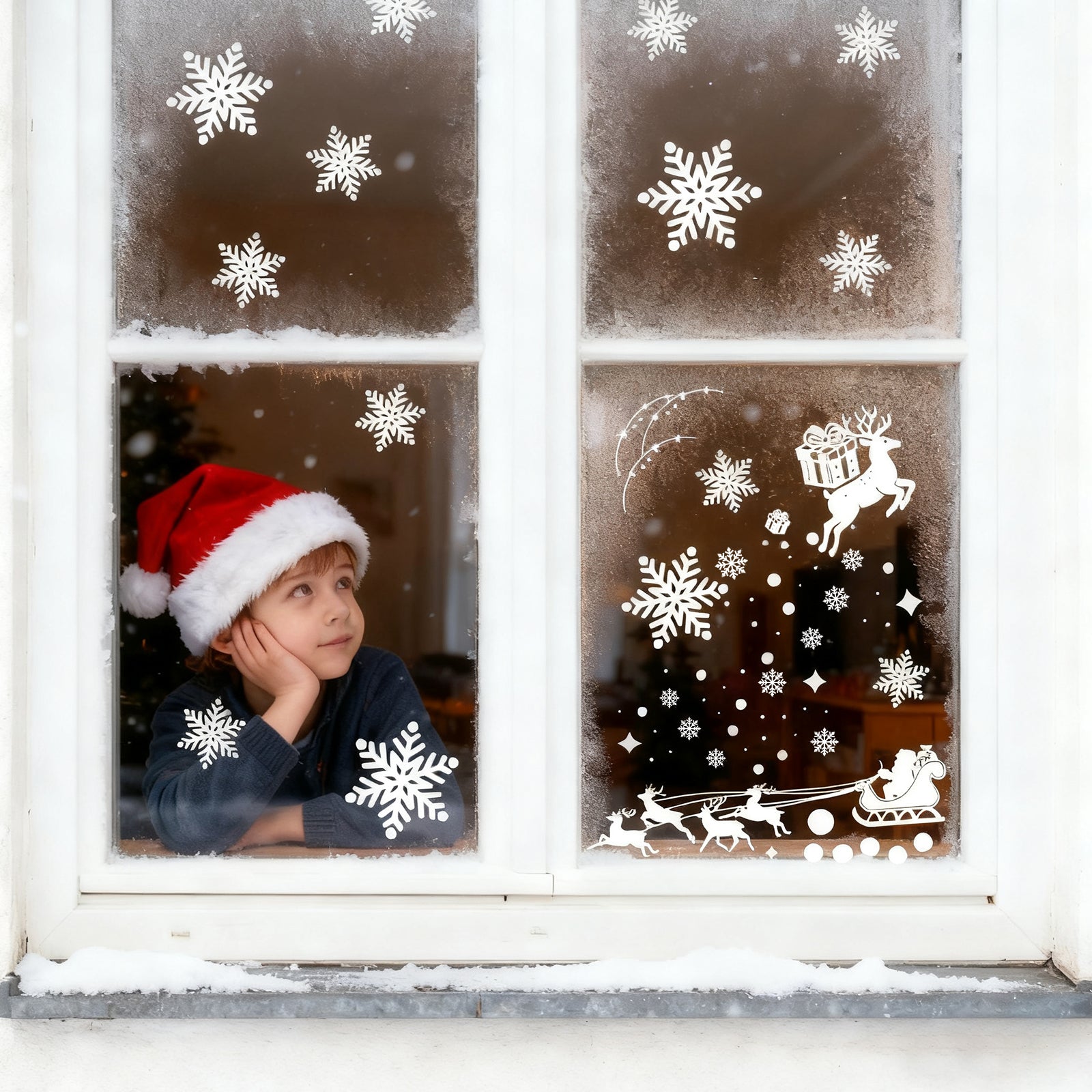 Give your windows a festive atmosphere with the self-adhesive Christmas window clings .