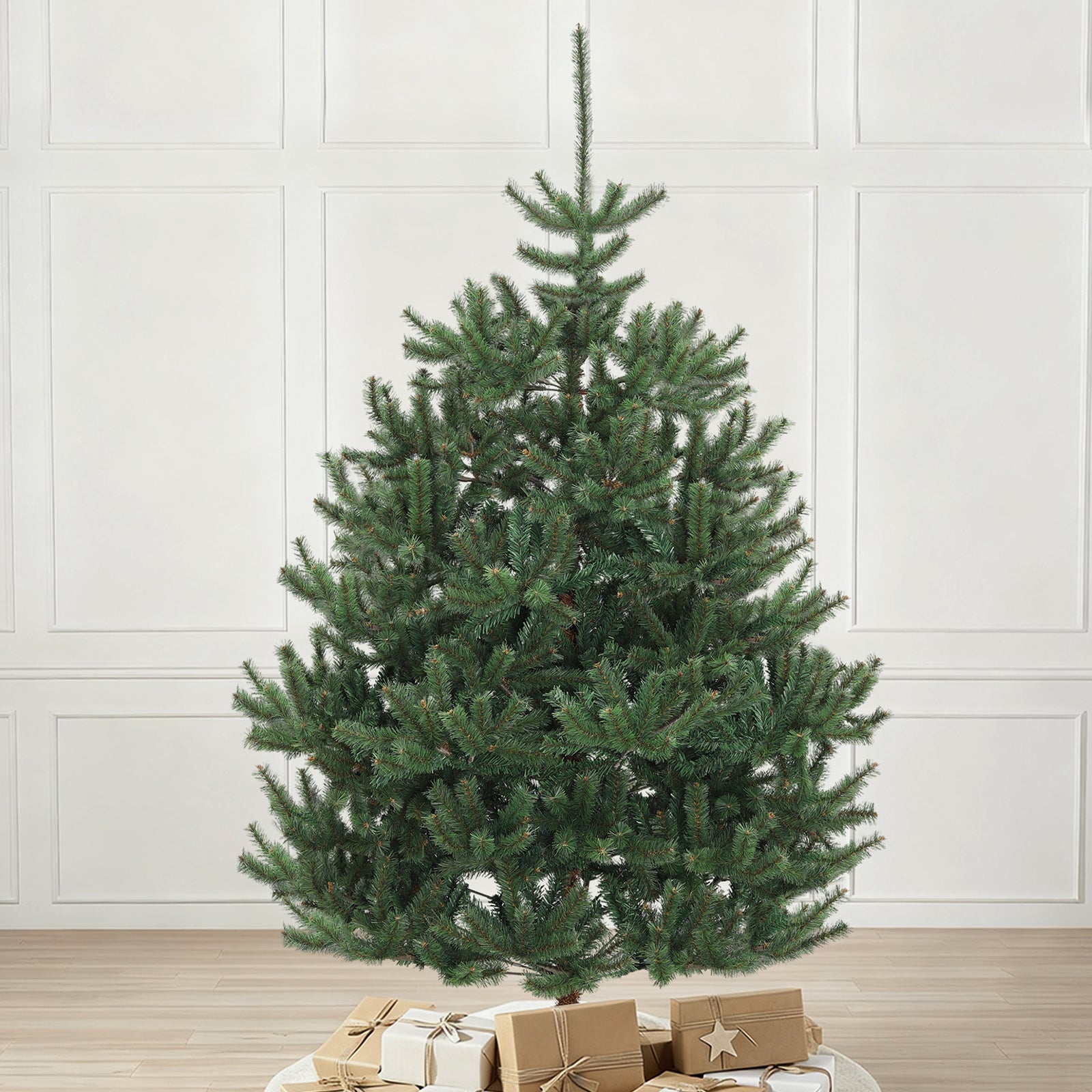 This tree is an authentic replica of a real Nordmann fir and impresses with its lifelike shape and lush, dense branches . Available in sizes of 180 cm (1118 tips) and 210 cm (1512 tips) , it perfectly fills any room.