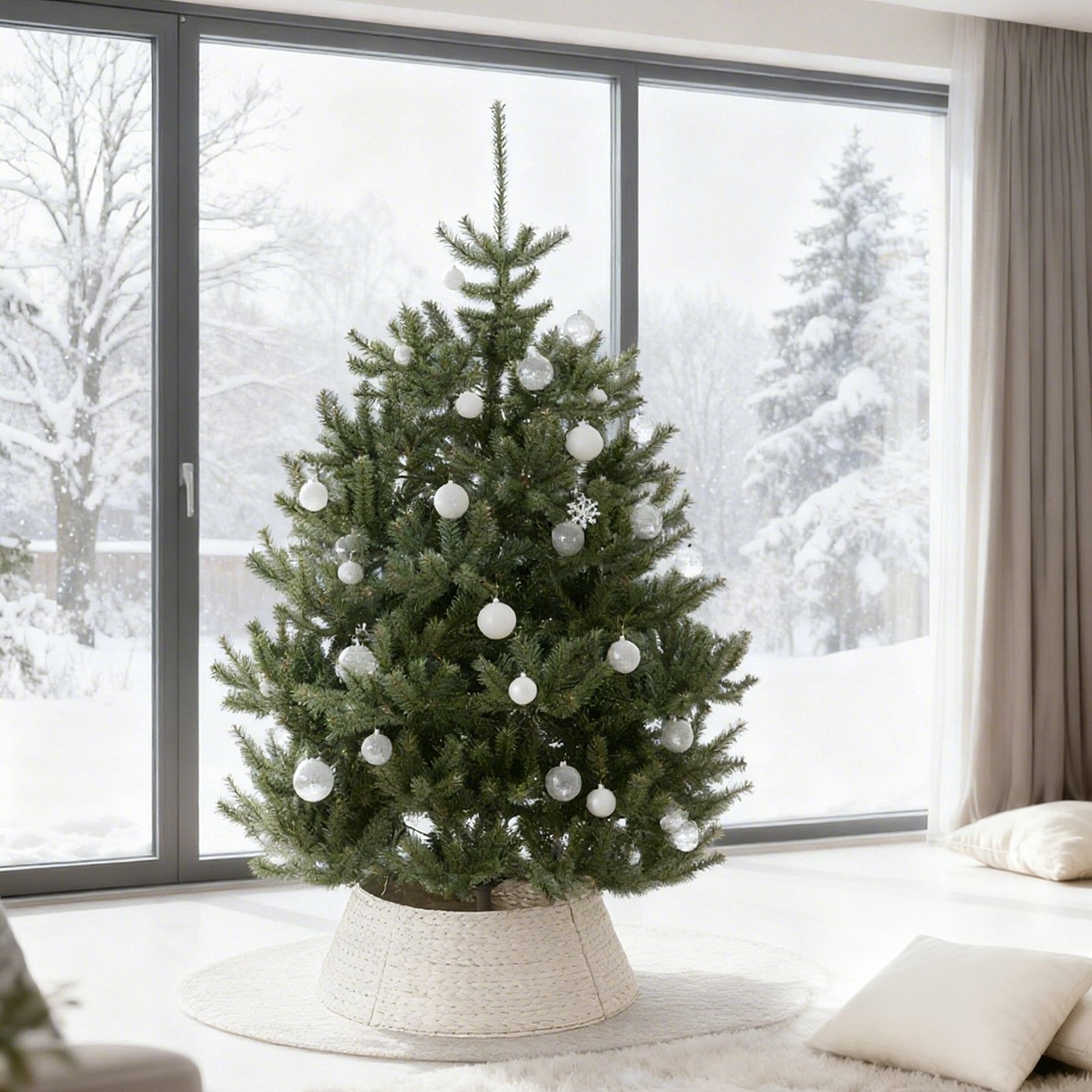 The tree has an impressive diameter of 108 cm (180 cm version) or 118 cm (210 cm version) and thus offers an imposing sight that perfectly fills the room.