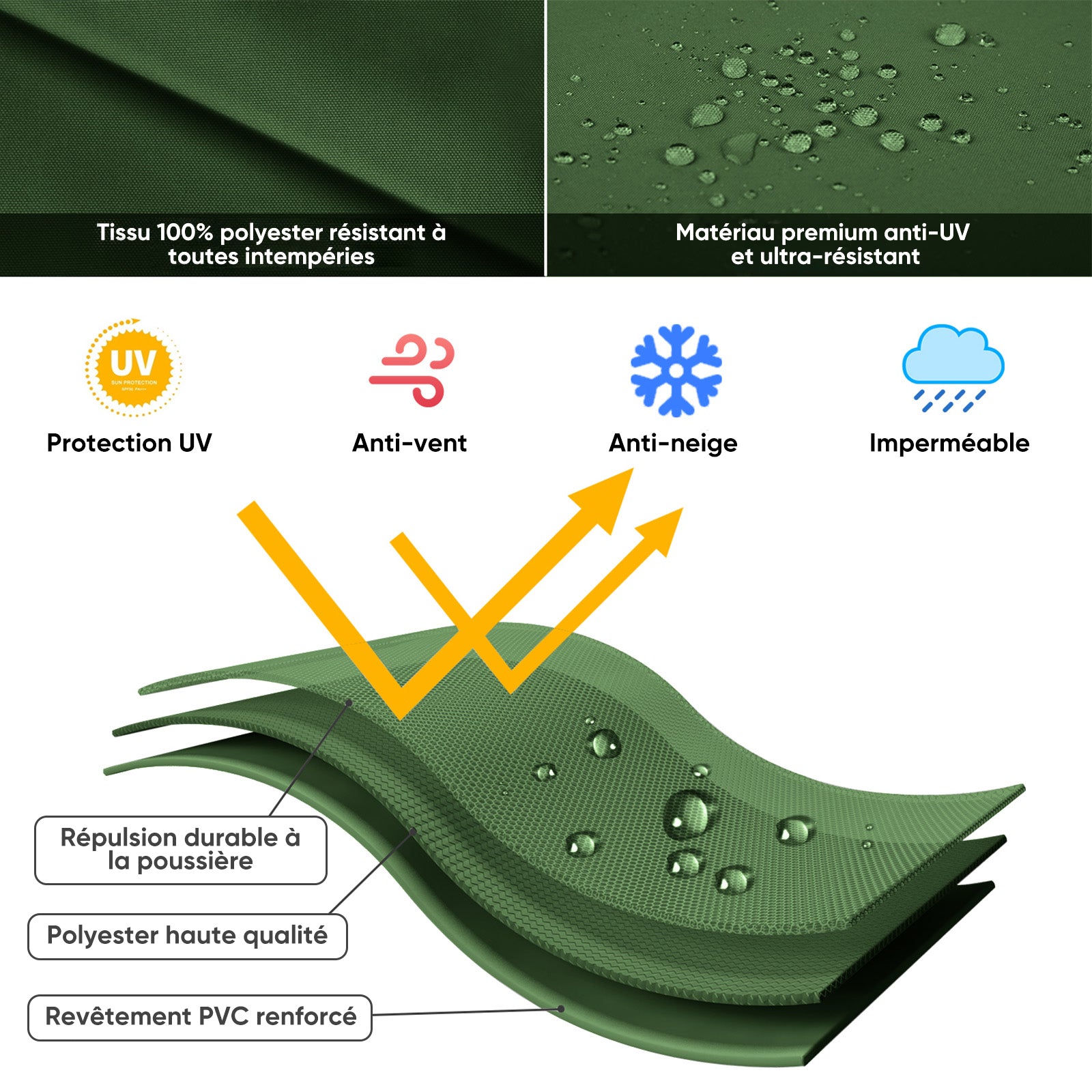 High-quality material: Our cover (100% polyester) is durable, weatherproof and offers long-lasting protection against wind and rain.