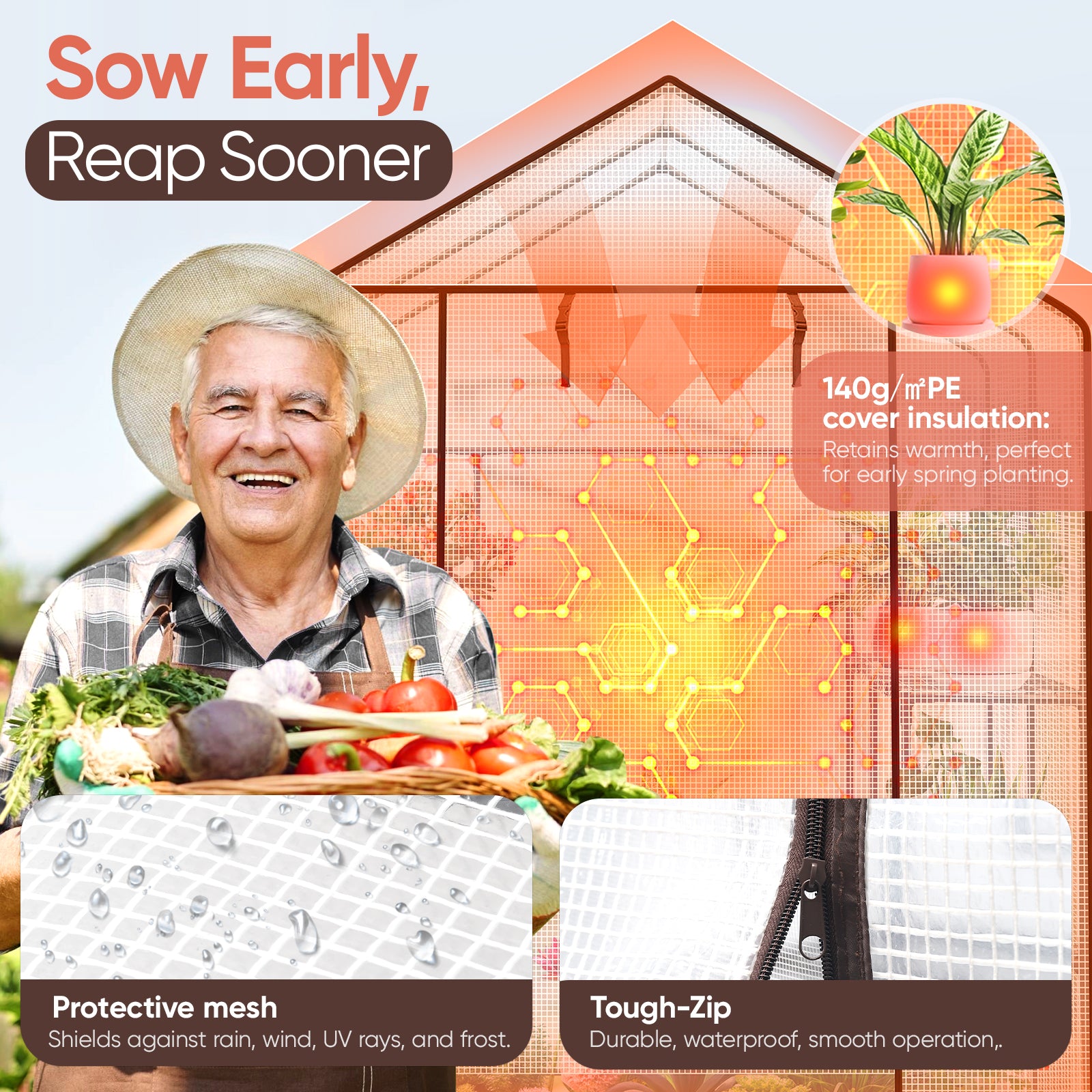 2. The UV-resistant plastic cover protects the plants from light rain and wind