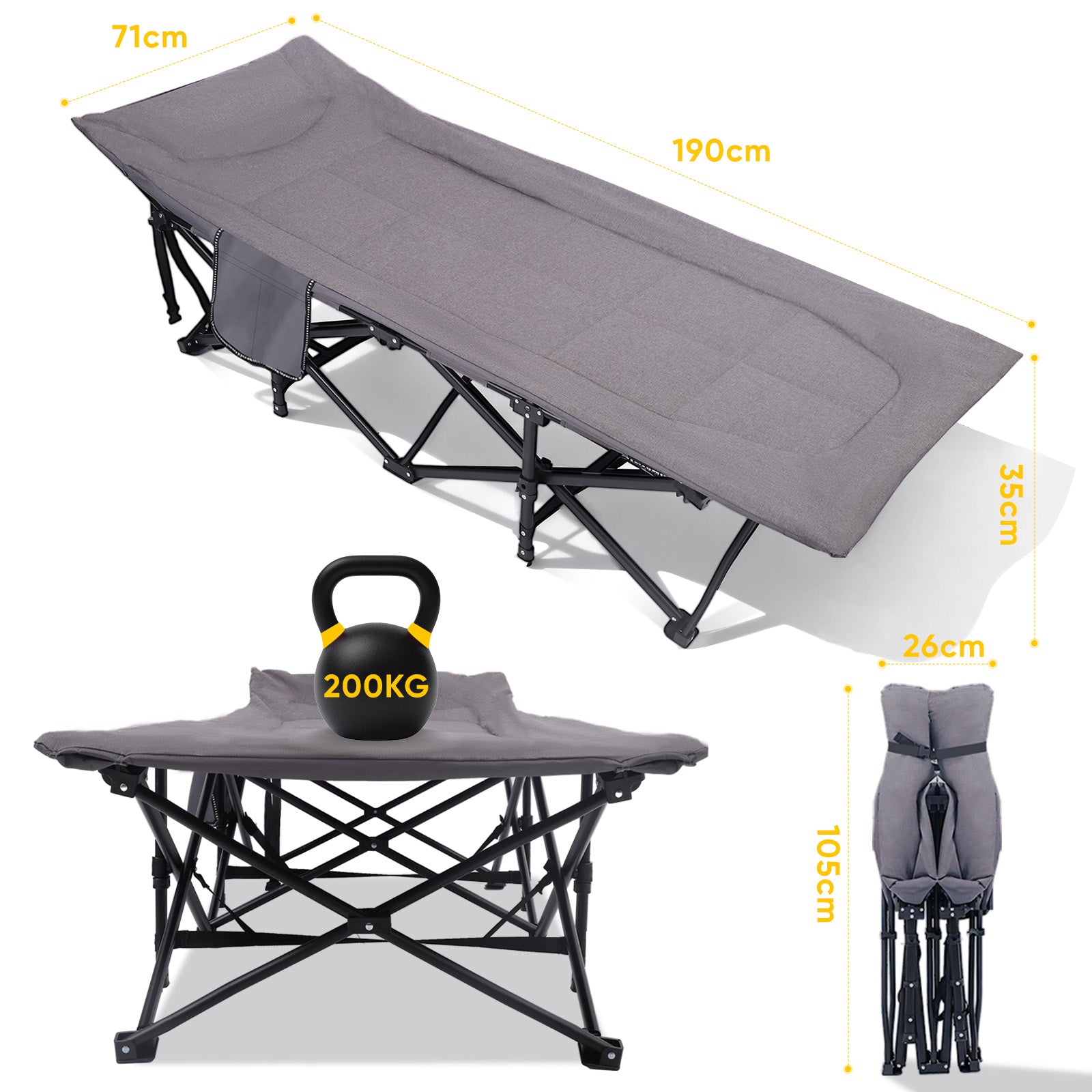 Ein robustes, bequemes und funktionales Klappbett, das Outdoor-Abenteuer und Gästebesuche gleichermaßen erleichtert.