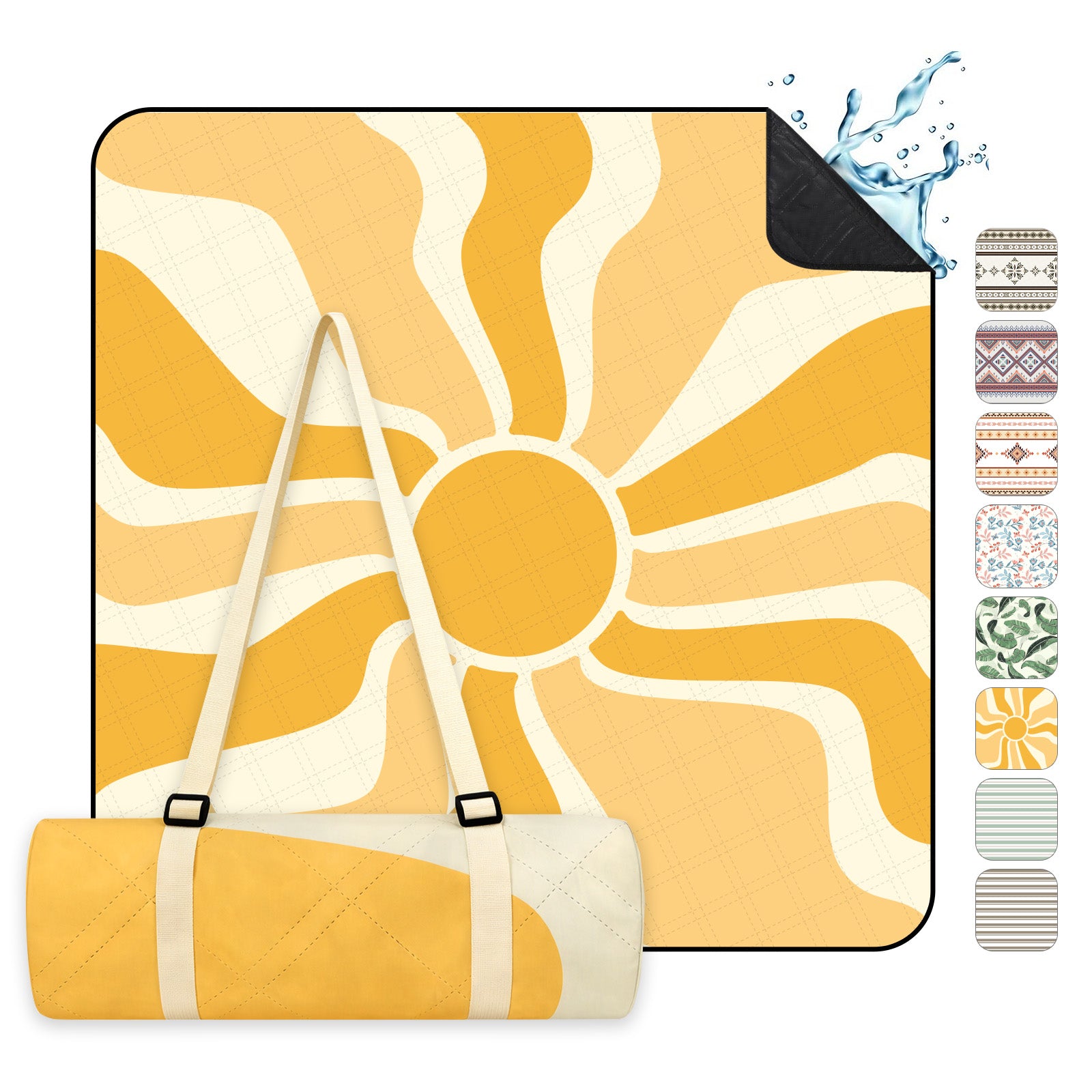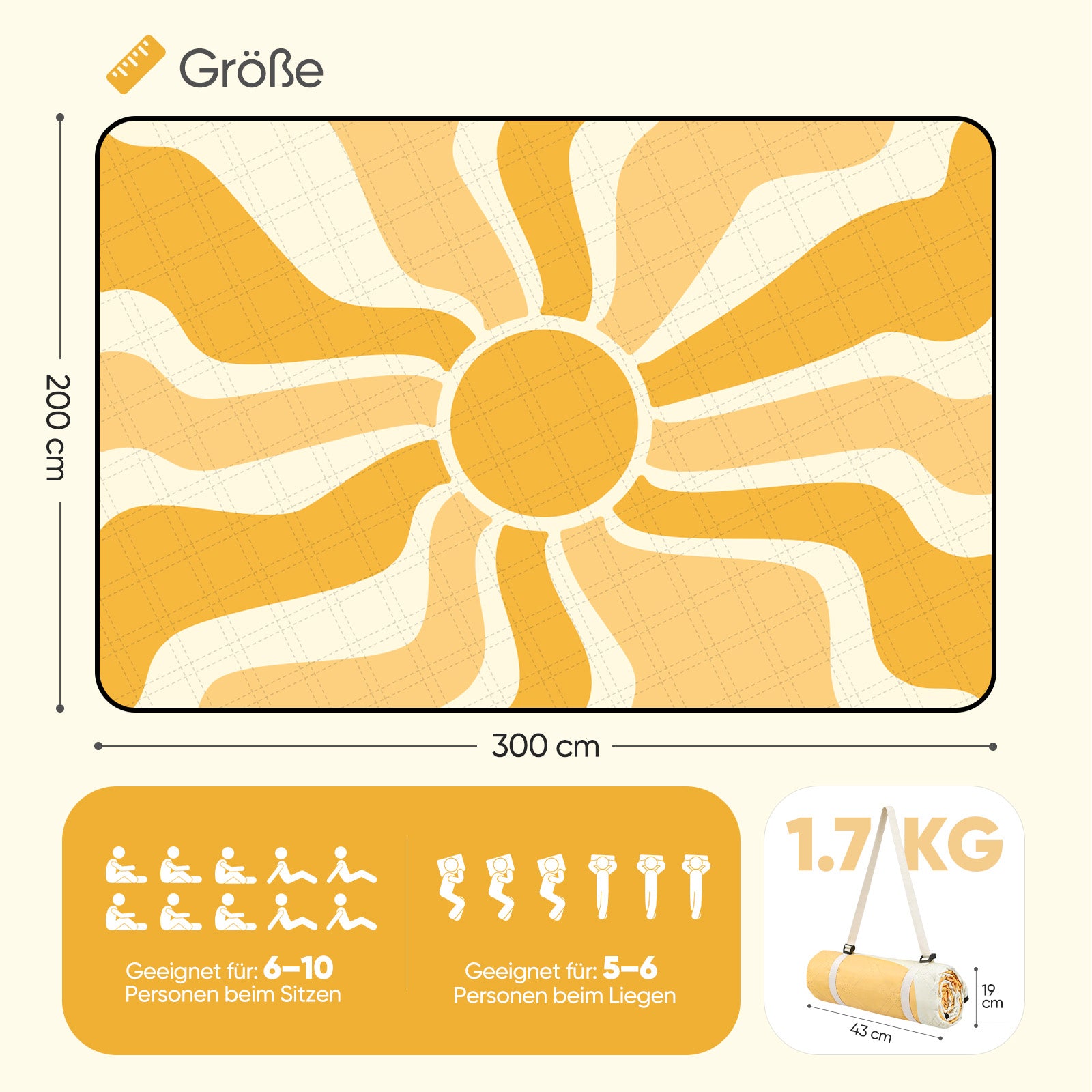 Die Sekey Picknickdecke mit Sonnen-Motiv bringt sonnige Frische in jeden Outdoor-Ausflug. Dank dreischichtiger Konstruktion kombiniert sie Komfort, Schutz und praktische Reinigung. Perfekt für Strand, Park, Picknick oder Camping, sorgt die Decke für eine saubere und bequeme Sitzfläche.