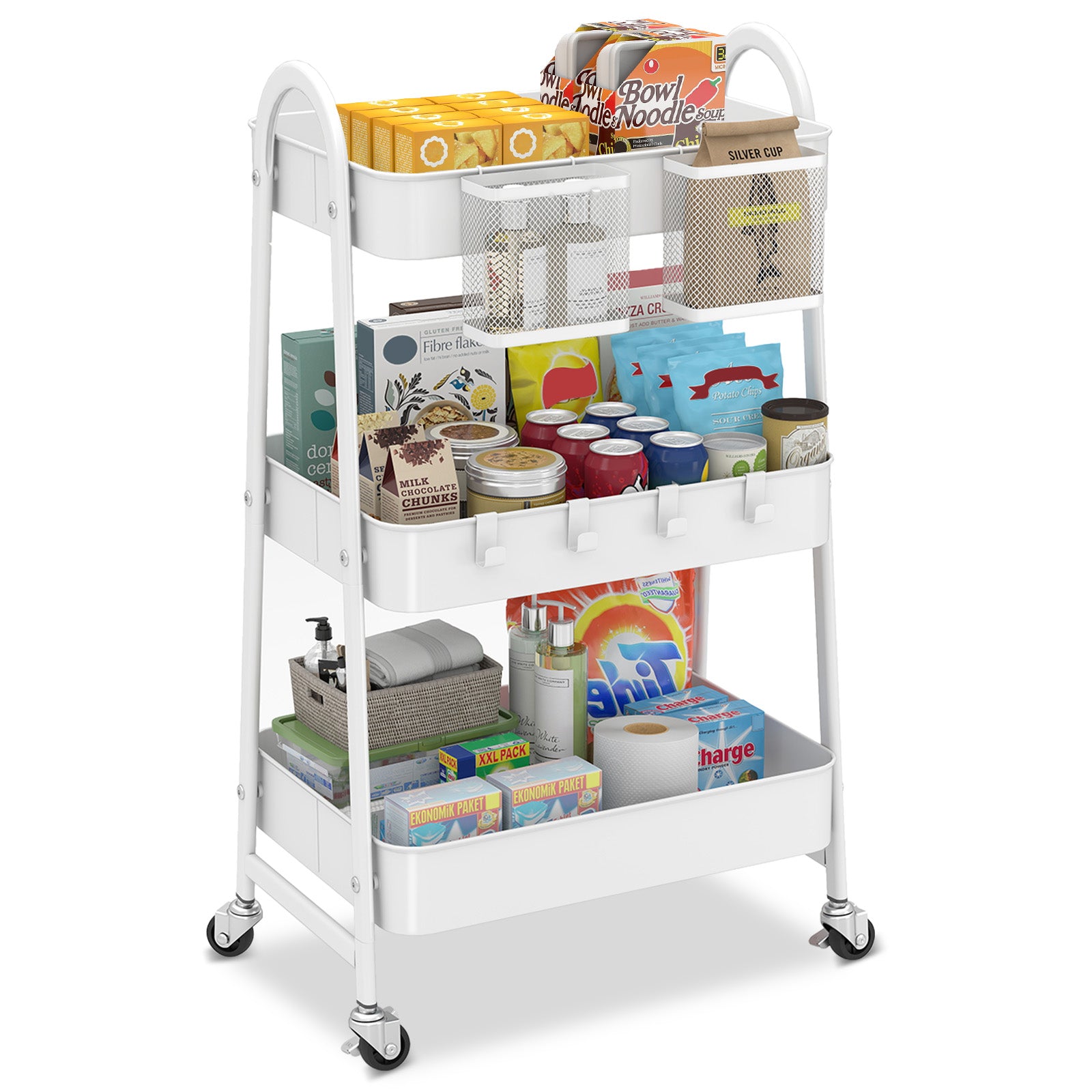 Der Sekey Rollwagen mit 3 Ebenen bringt Stabilität, Flexibilität und zusätzlichen Stauraum in Ihr Zuhause. Mit robustem Stahlgestell, praktischen Hängekörben und Haken ist er die perfekte Lösung für eine effiziente Aufbewahrung.