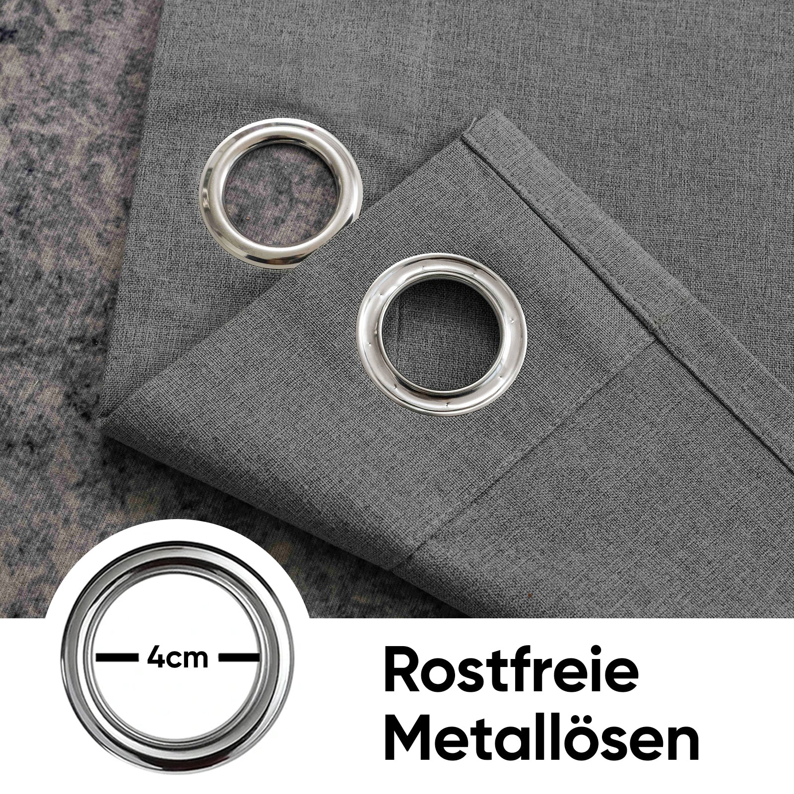 Einfache Montage: Metallösen ermöglichen schnelles Aufhängen ohne Werkzeug