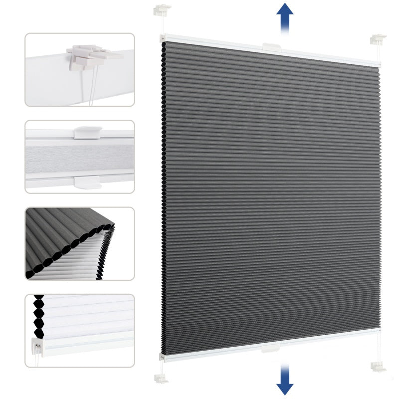 Honeycomb pleated blinds without drilling: Thanks to the adjustable clamp brackets, it can be attached to the window quickly and easily - without screws or drilling.