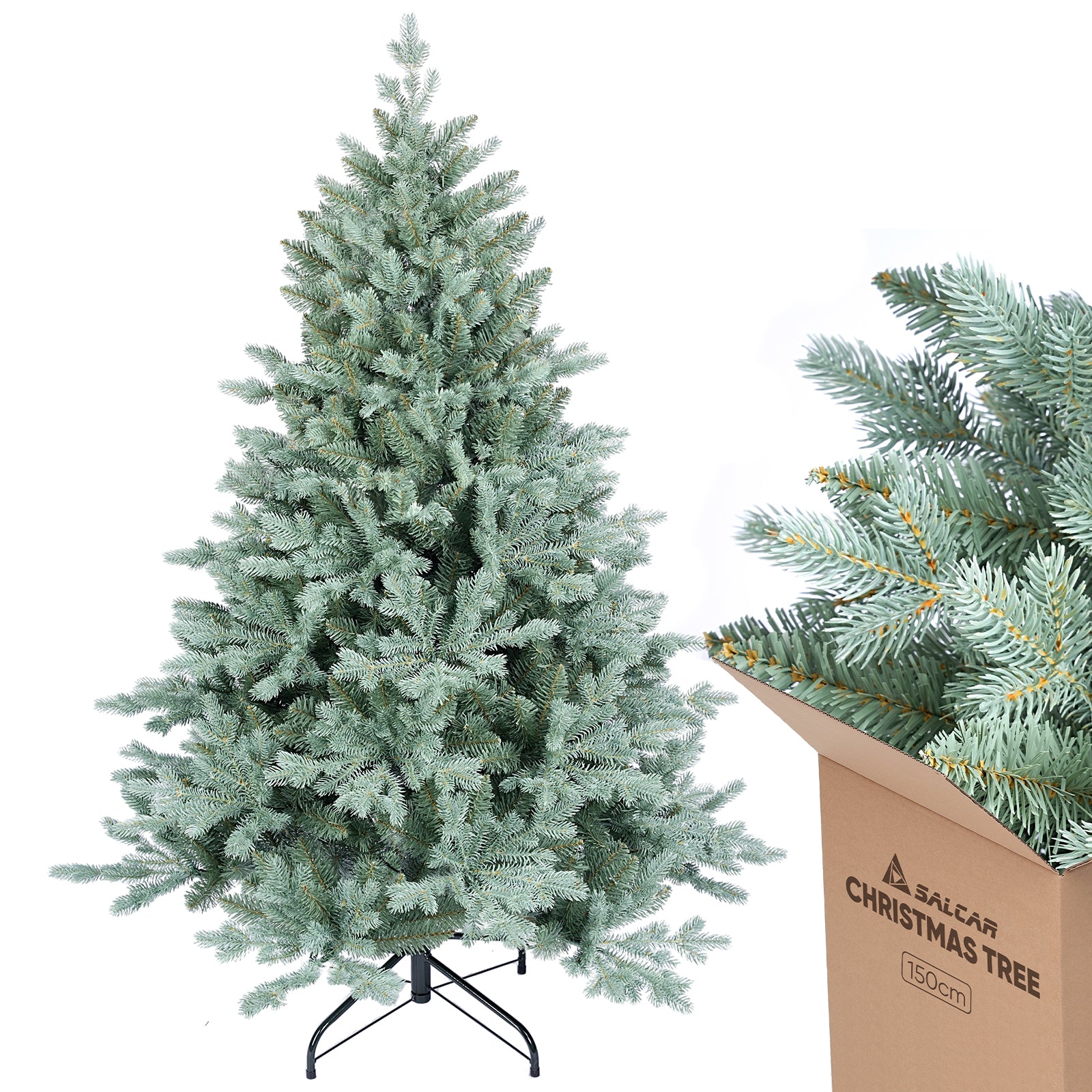 SALCAR Künstlicher Weihnachtsbaum aus PE & unsichtbaren PVC-Spitzen – Natürliche graugrüne Tanne mit Schnellaufbau-Klappsystem & stabilem Metallständer (150 cm / 180 cm / 210 cm)