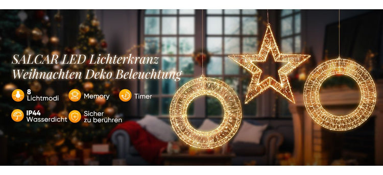 SALCAR bietet hochwertige LED-Sterne für eine festliche Weihnachtsdekoration im Innen- und Außenbereich. Drei Modelle stehen im Fokus: der roségoldene LED Stern Ø30...