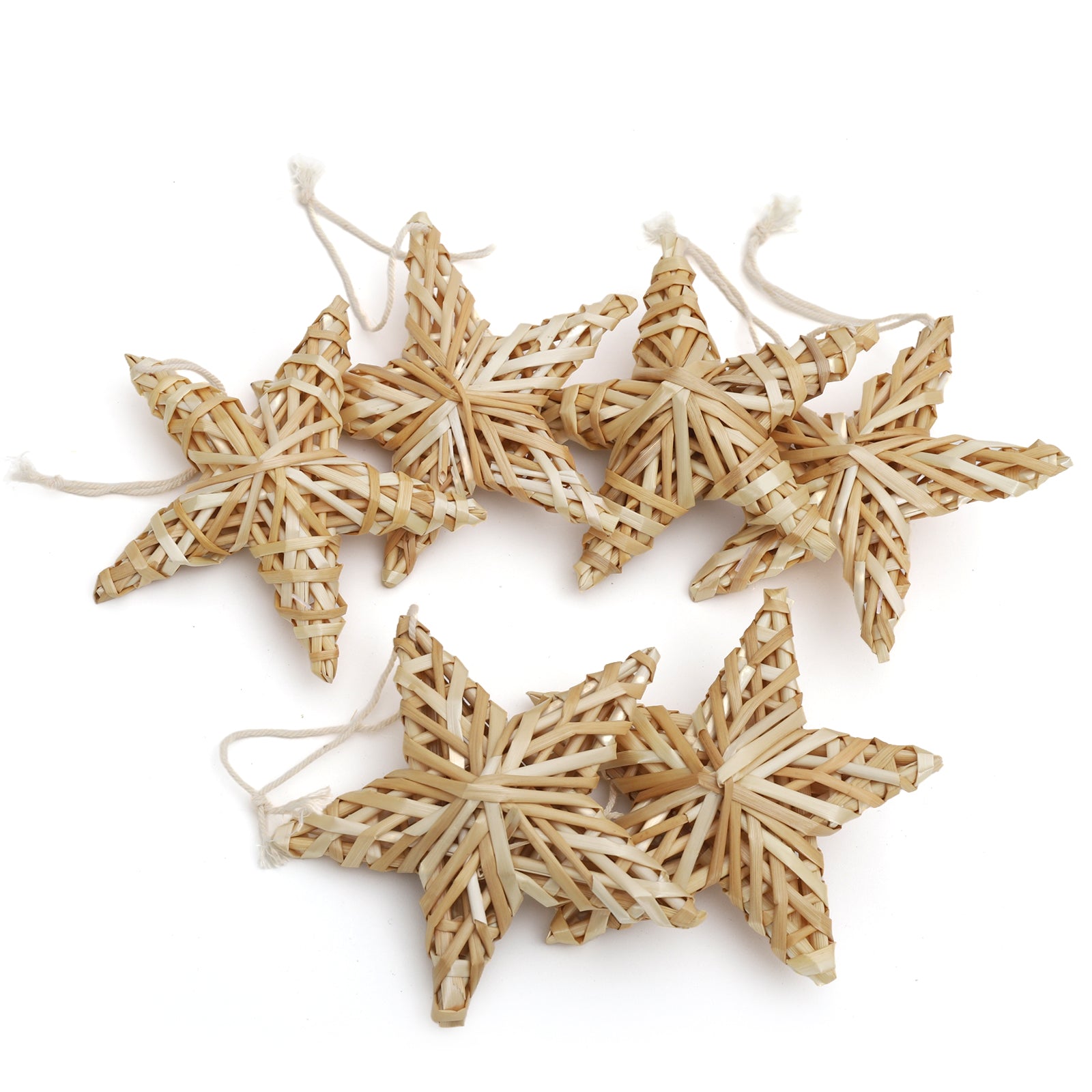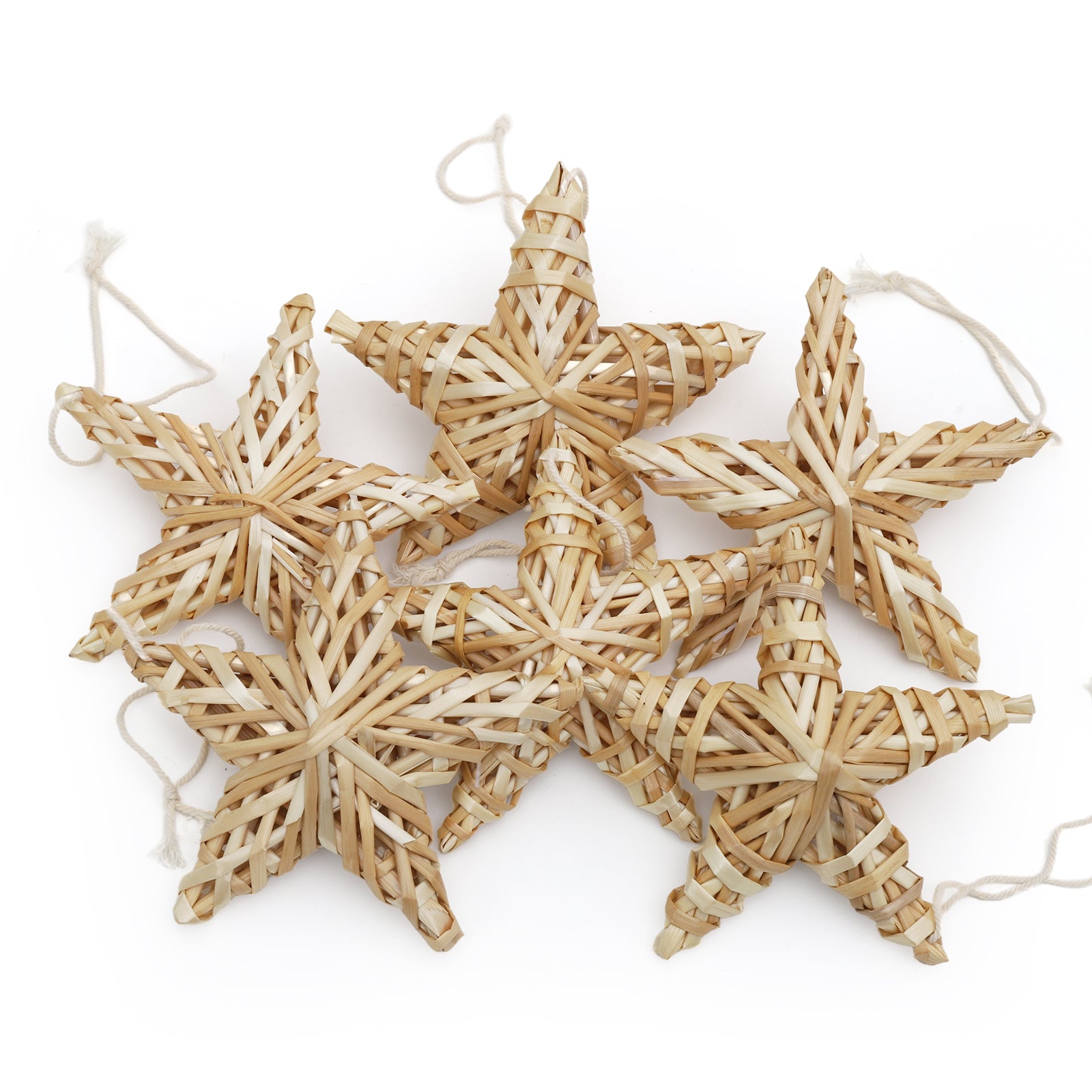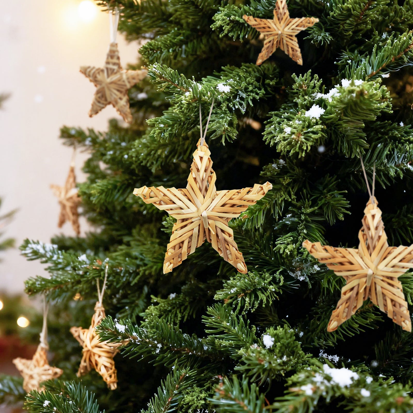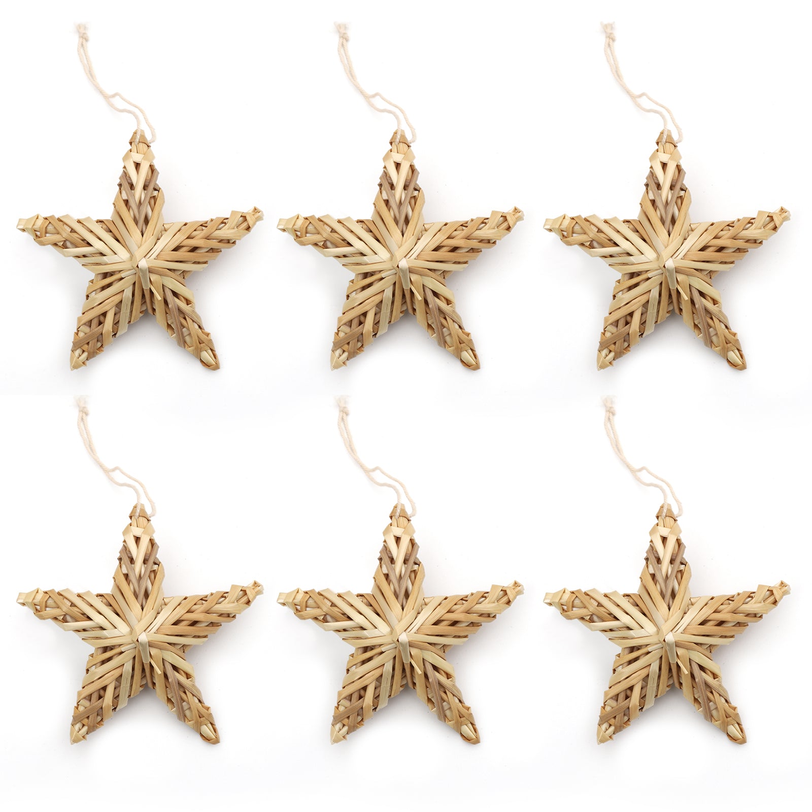 Jedes Set enthält 6 hochwertige, naturbelassene Fünfzackige Sterne mit einem Durchmesser von ca. 11 cm – perfekt geeignet als Weihnachtsbaumanhänger, für den Adventskranz oder als rustikaler Wandschmuck.