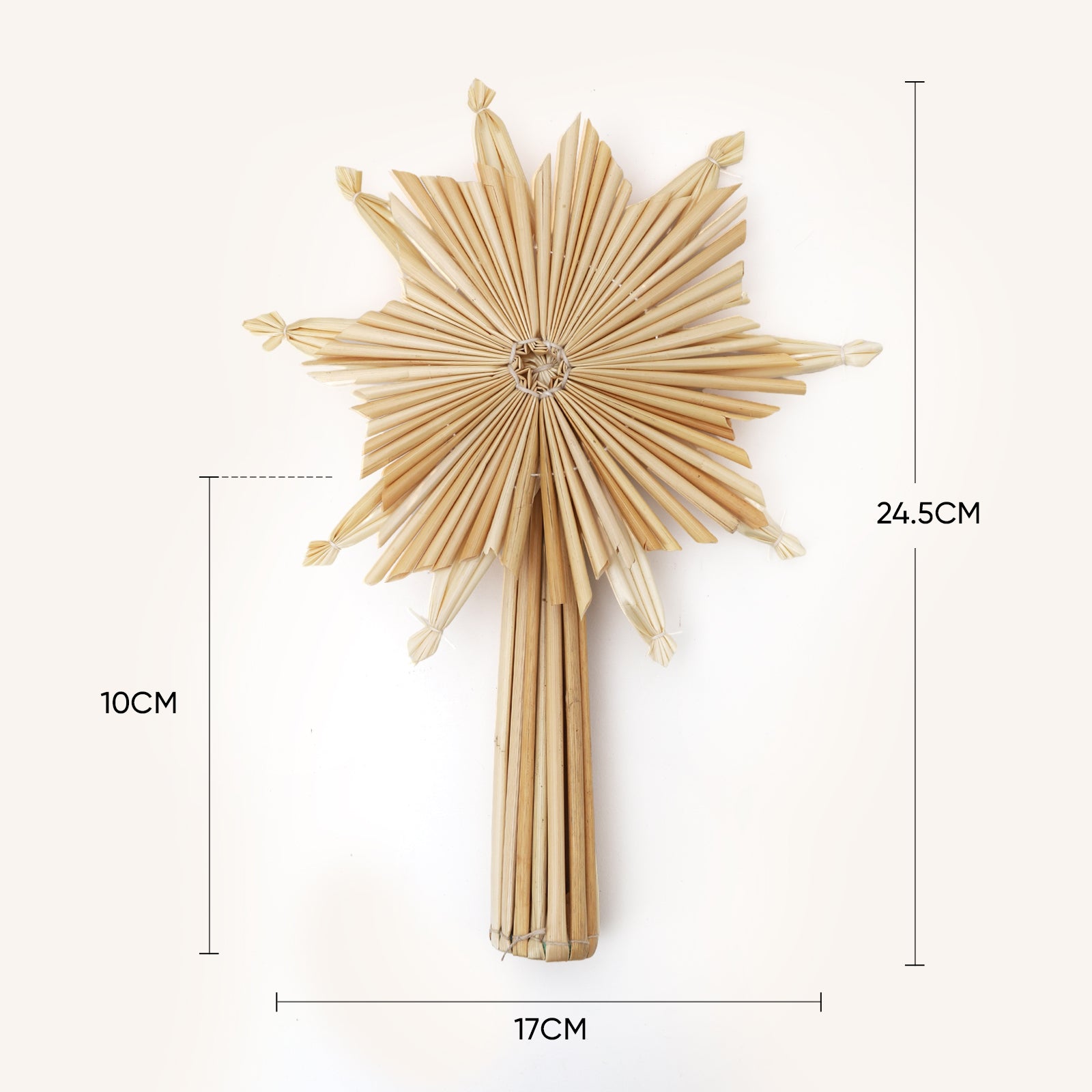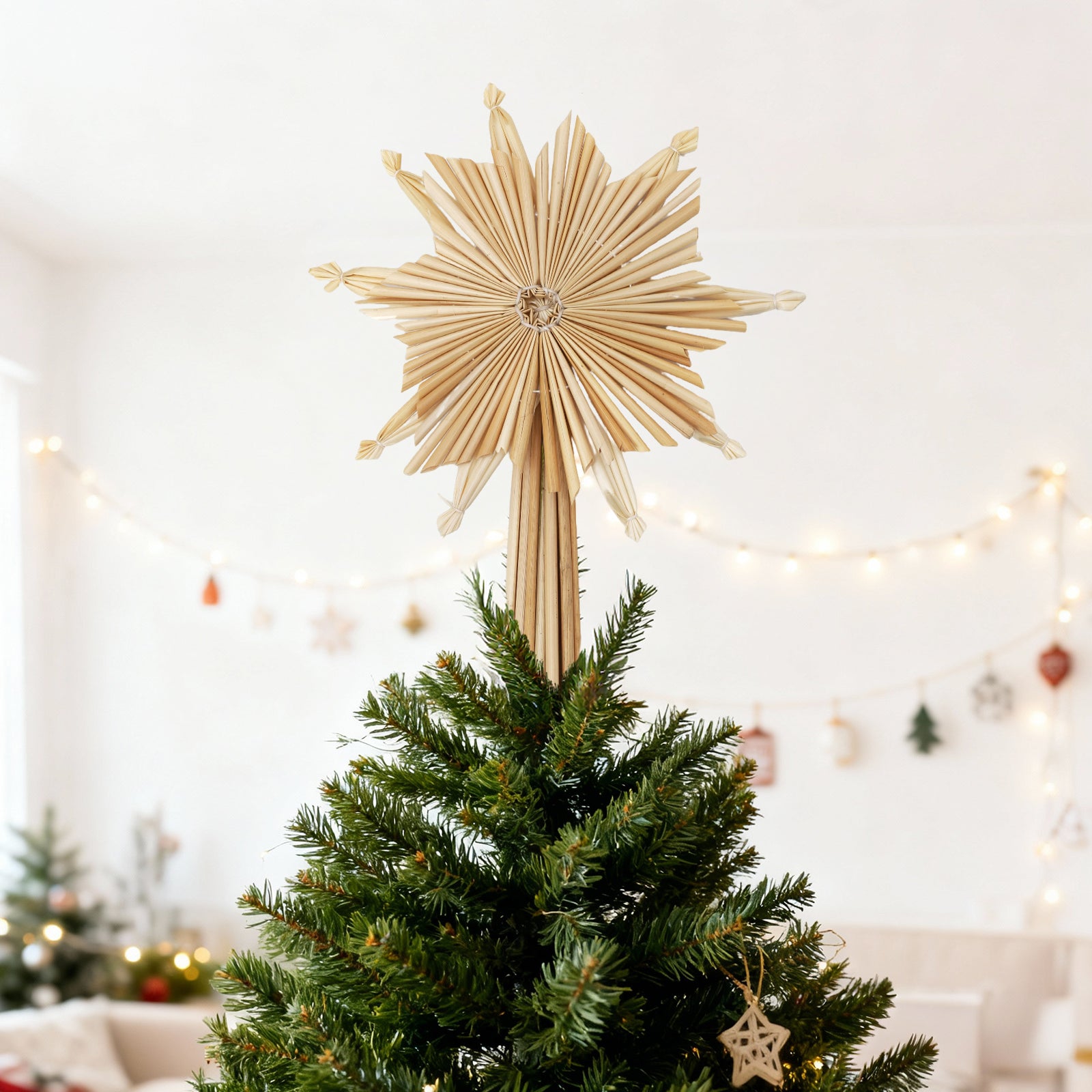 Hergestellt aus hochwertigem, nachhaltigem Stroh, ist dieser Stern nicht nur dekorativ, sondern auch langlebig und wiederverwendbar. Durch das leichte Material lässt er sich mühelos auf die Baumspitze setzen und nach den Feiertagen bequem verstauen.