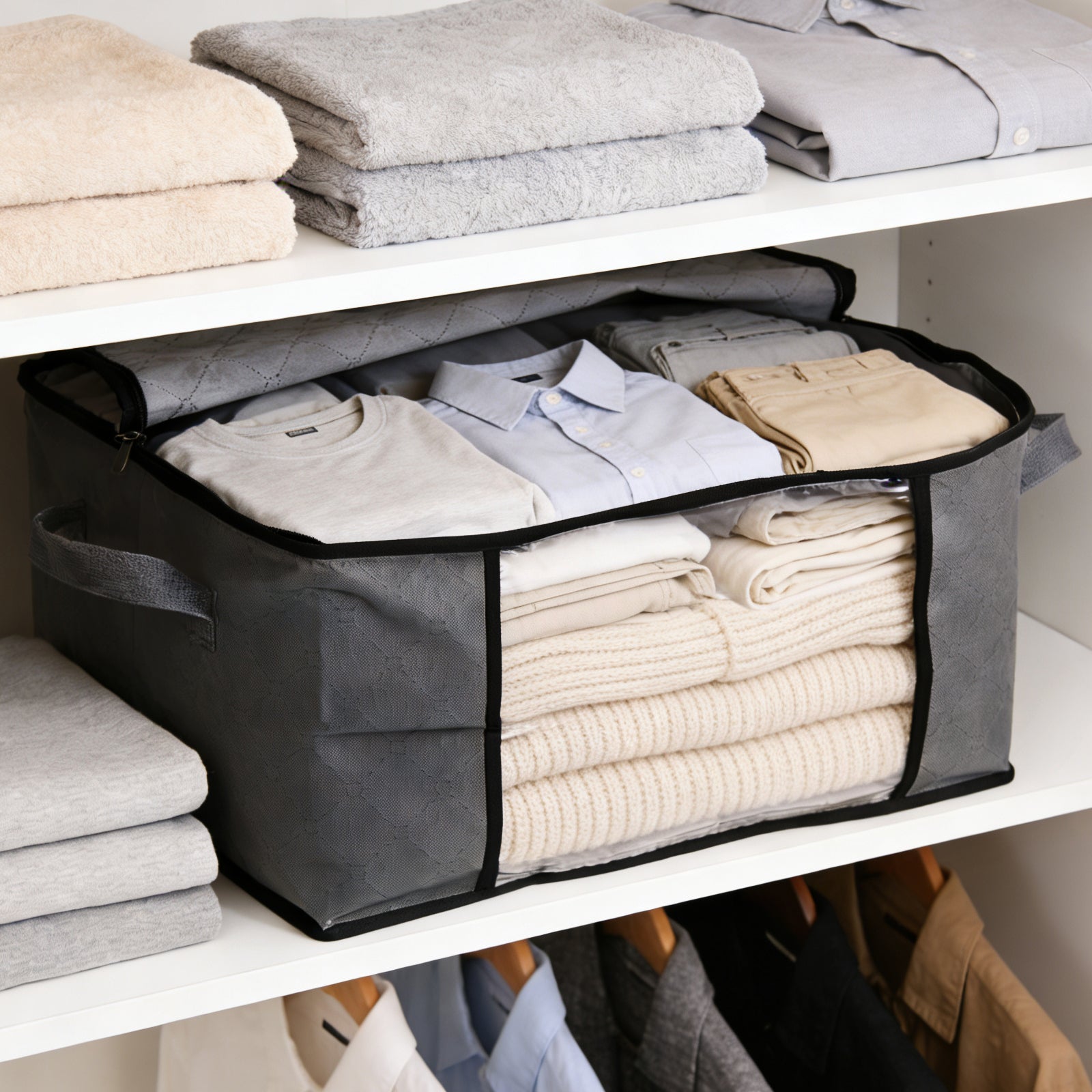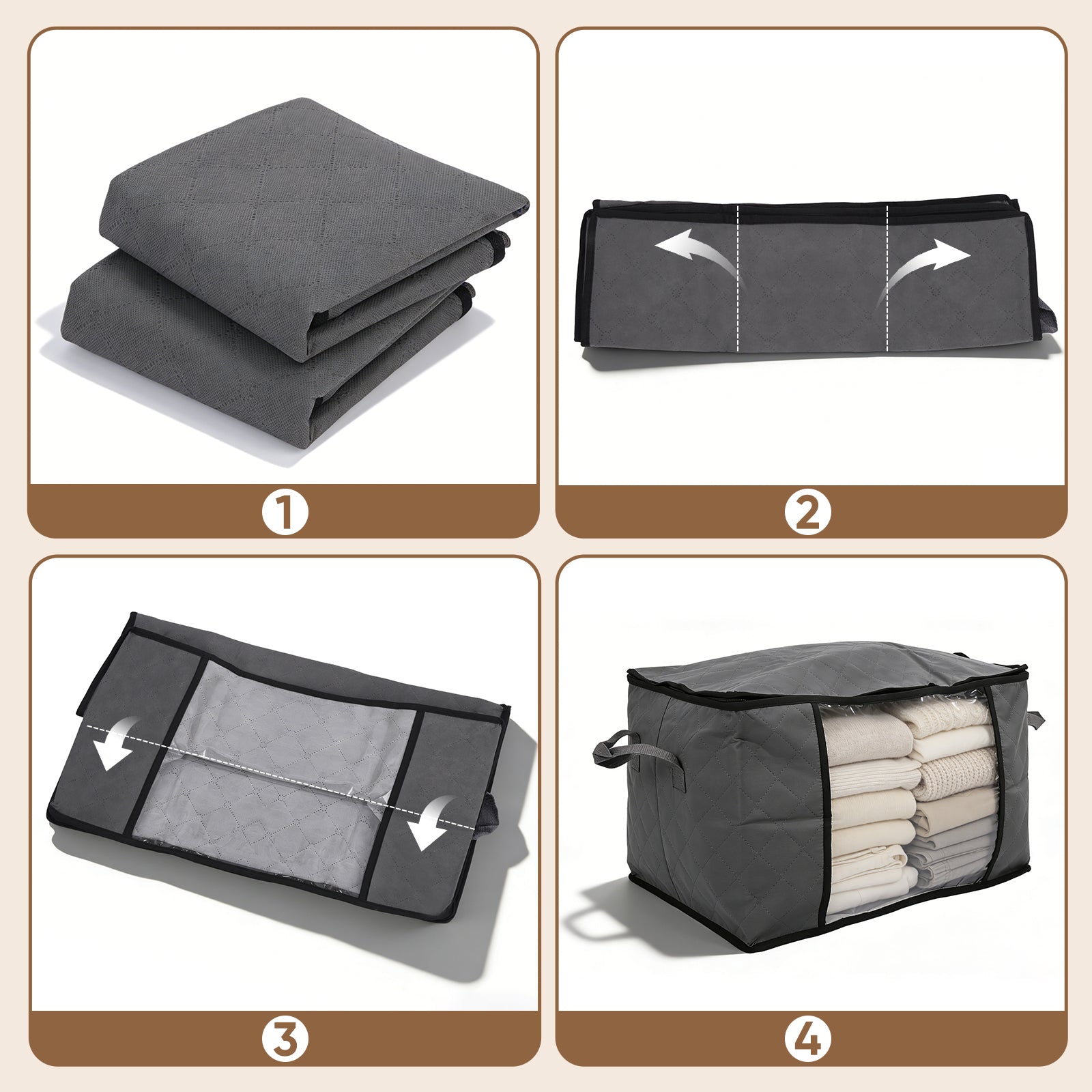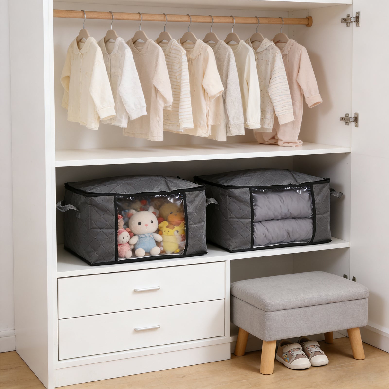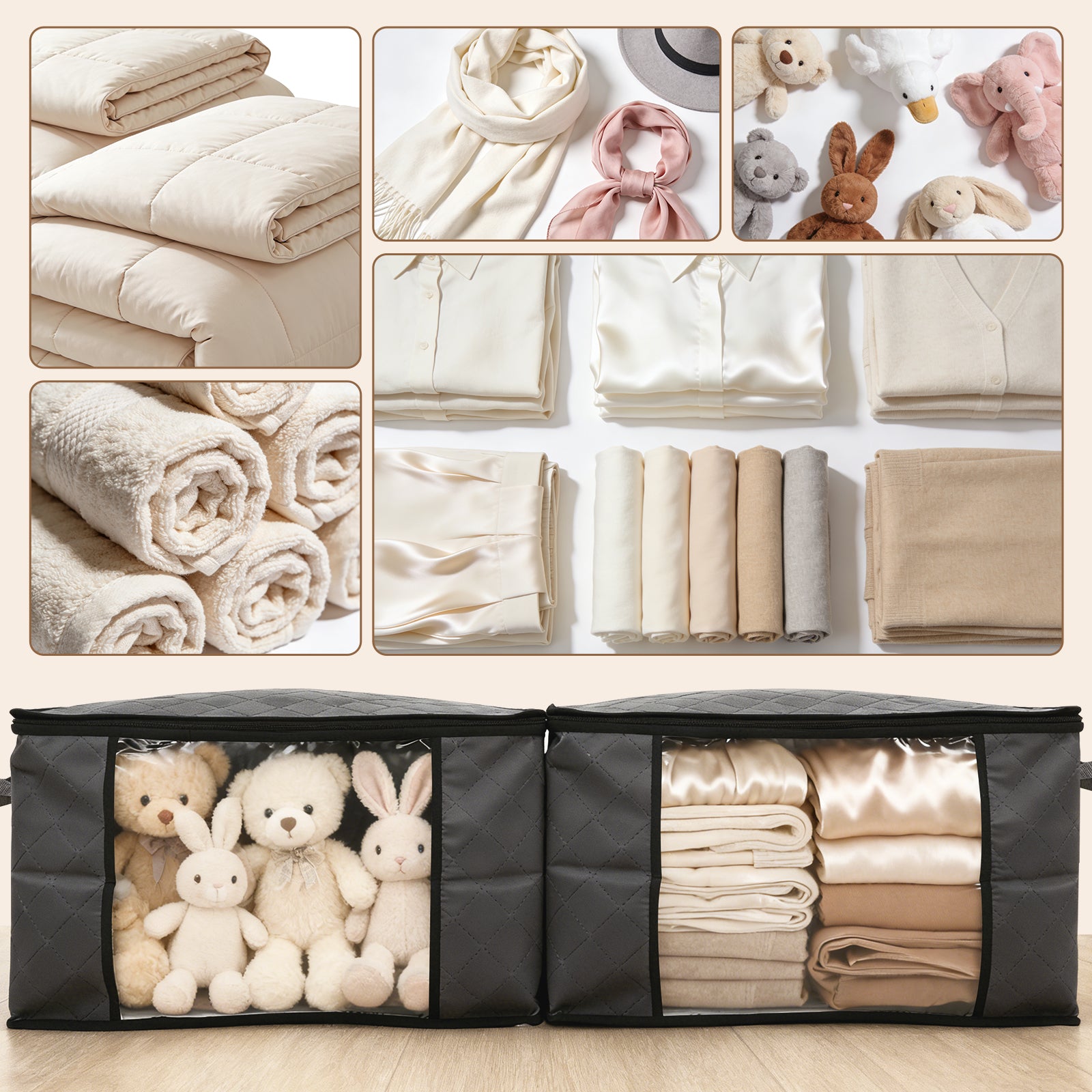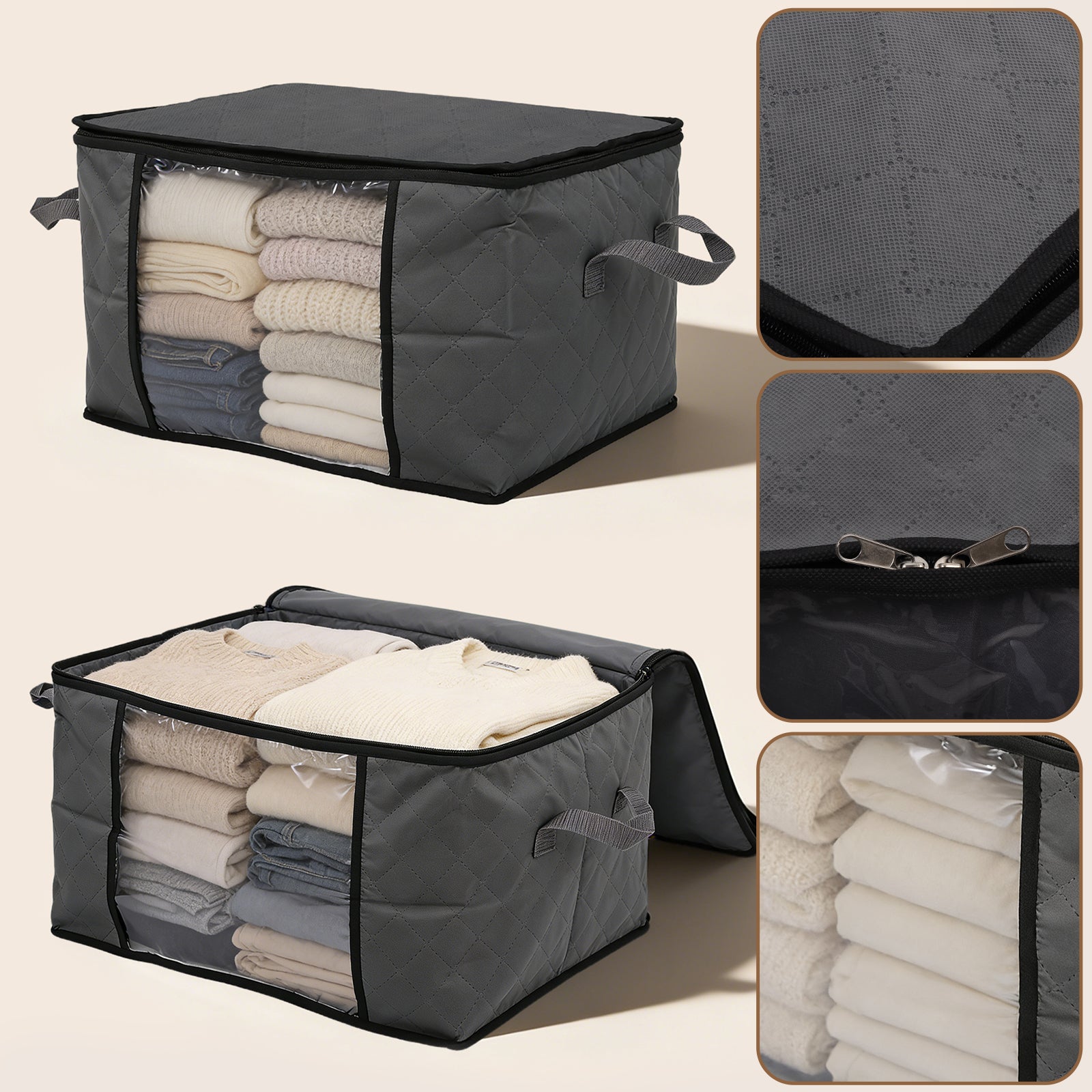 Großes Fassungsvermögen: 60L für 24–36 T-Shirts/Thin Tops, 2 Einzelbettdecken, 6–10 Winterjacken oder 50–80 Kinderkleidungsstücke; 90L für 40–60 T-Shirts/Thin Tops, 4 Einzelbettdecken, 10–16 Winterjacken oder 80–140 Kinderkleidungsstücke