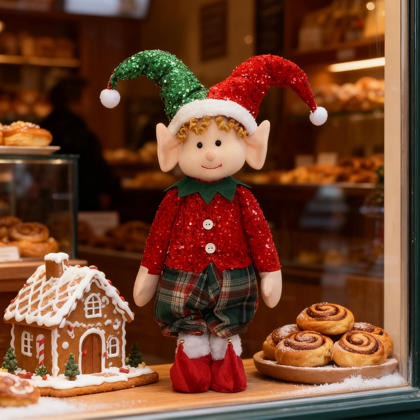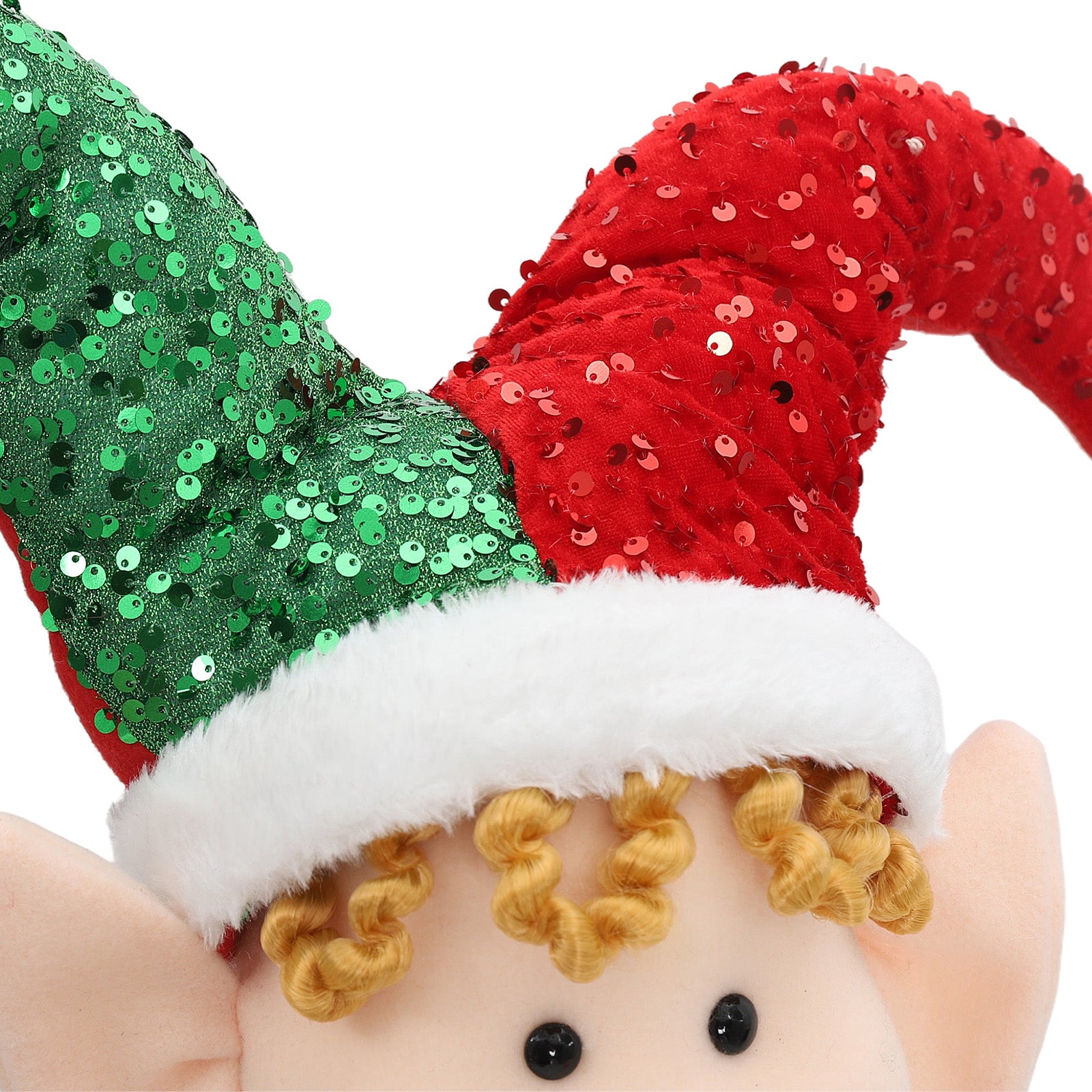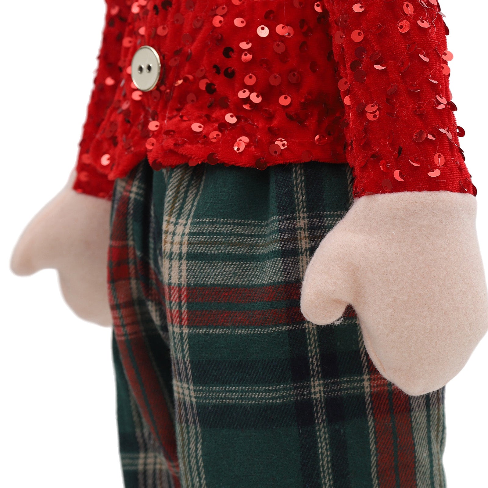 ✨ Detailreich gestaltet: Der kleine Junge trägt rote Kleidung, rote Stiefel und eine rot-grüne Zipfelmütze mit Glöckchen, die beim Schütteln klingeln.