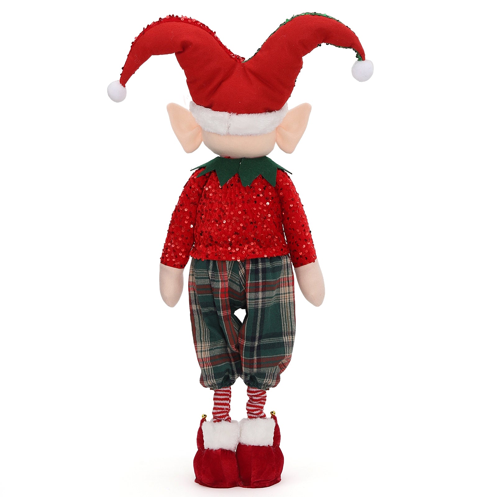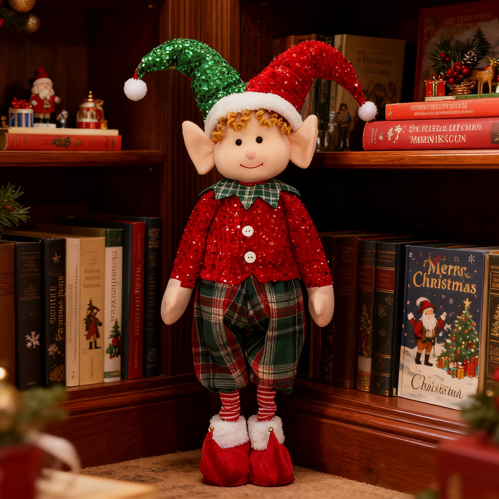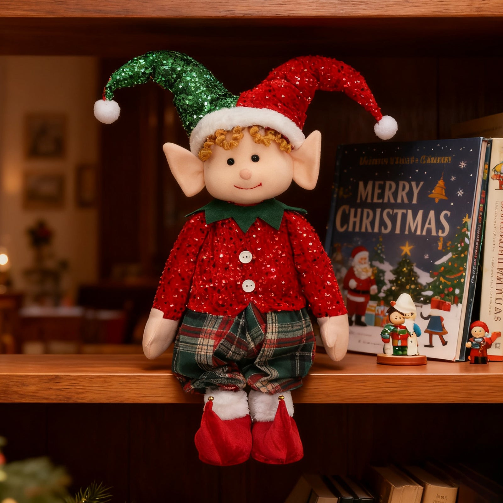 ✨ Detailreich gestaltet: Der kleine Junge trägt rote Kleidung, rote Stiefel und eine rot-grüne Zipfelmütze mit Glöckchen, die beim Schütteln klingeln.