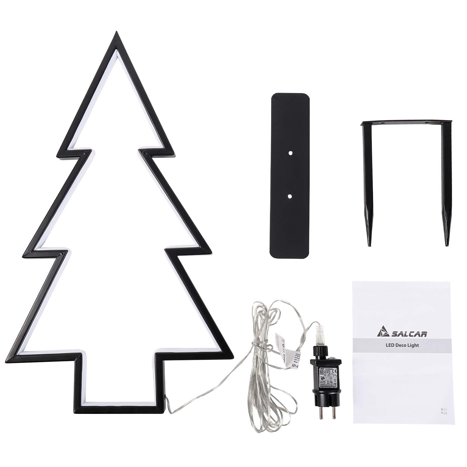 Der SALCAR XXL 3D LED Gartenstecker Tannenbaum verwandelt jeden Außenbereich in ein festliches Highlight. Der robuste Metall-Gartenstecker ist 60 cm hoch und 34 cm breit, ausgestattet mit 100 warmweißen LEDs und einem 5 m langen Kabel, ideal für Vorgarten, Terrasse oder Balkon.