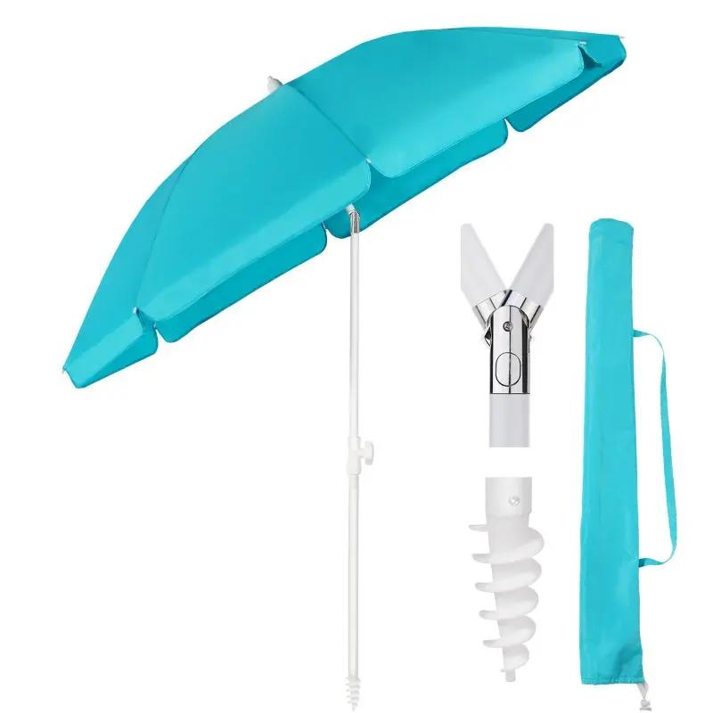 3-in-1 Sonnenschirm: Mit einem Durchmesser von wahlweise 160cm oder 180cm. Der Bodendübel erleichtert das Verankern im Sand, nehmen Sie einfach die Tragetasche und los geht's!