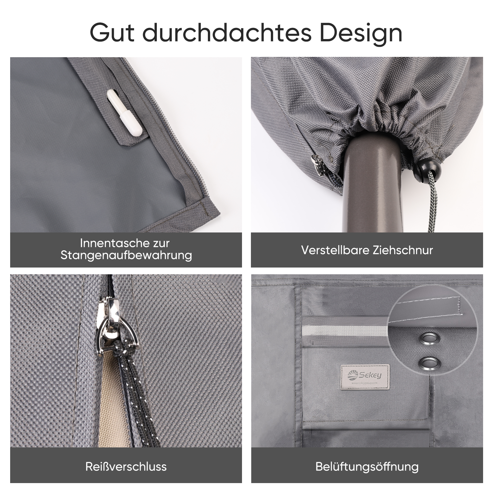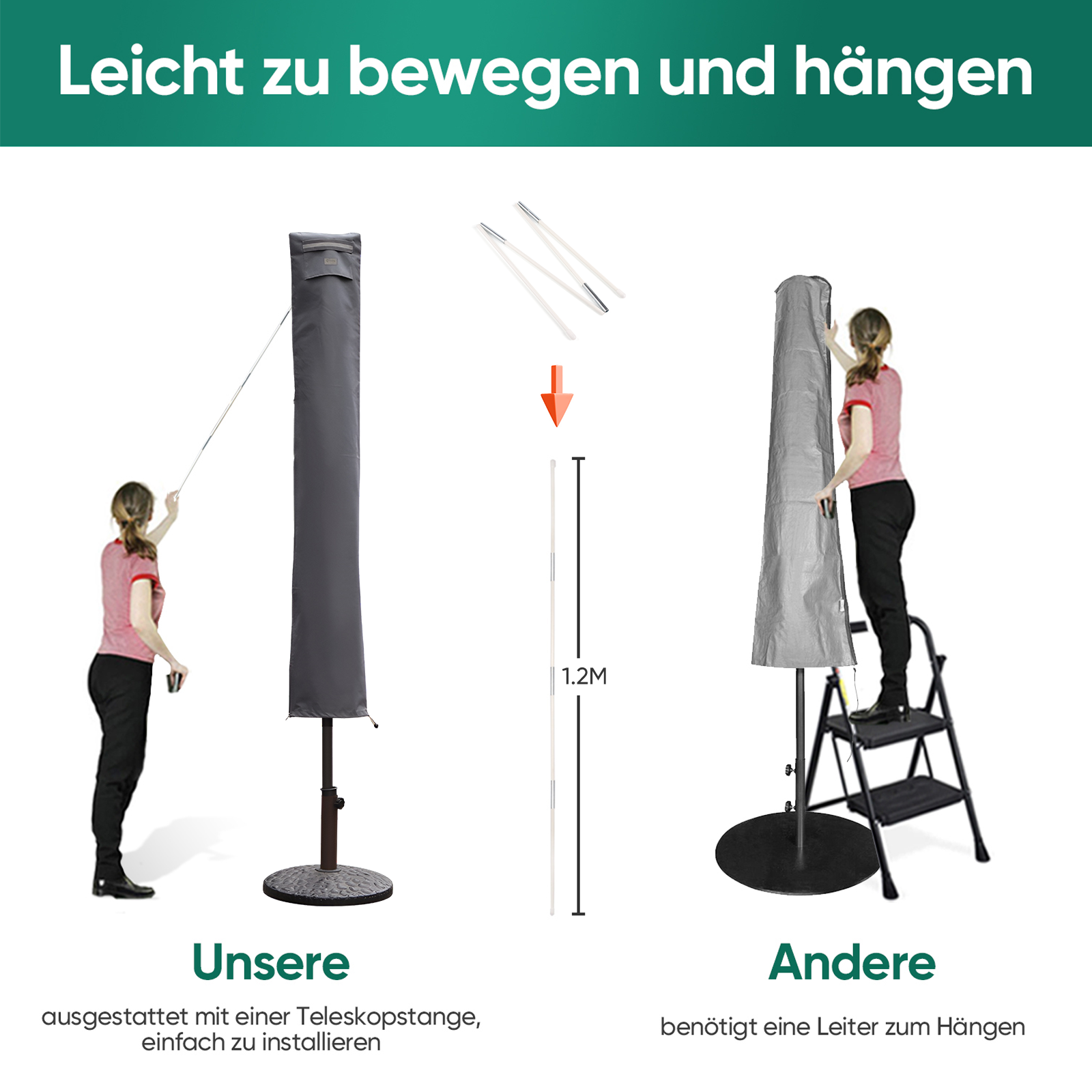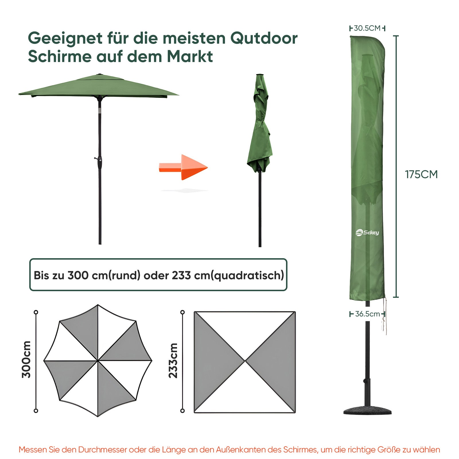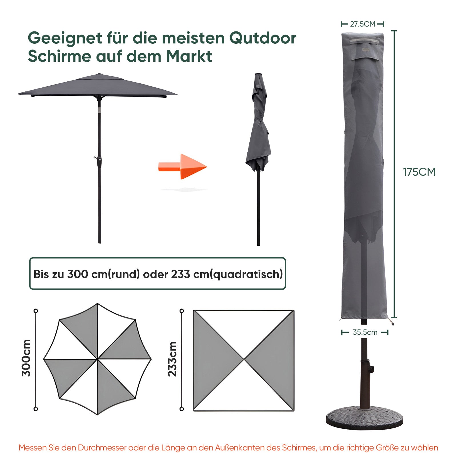 Mehrfachgrößen-Kompatibilität: Unsere Sonnenschirmhülle (175 x 30,5/36,5 cm) passt perfekt für Ø 300 cm Sonnenschirm.