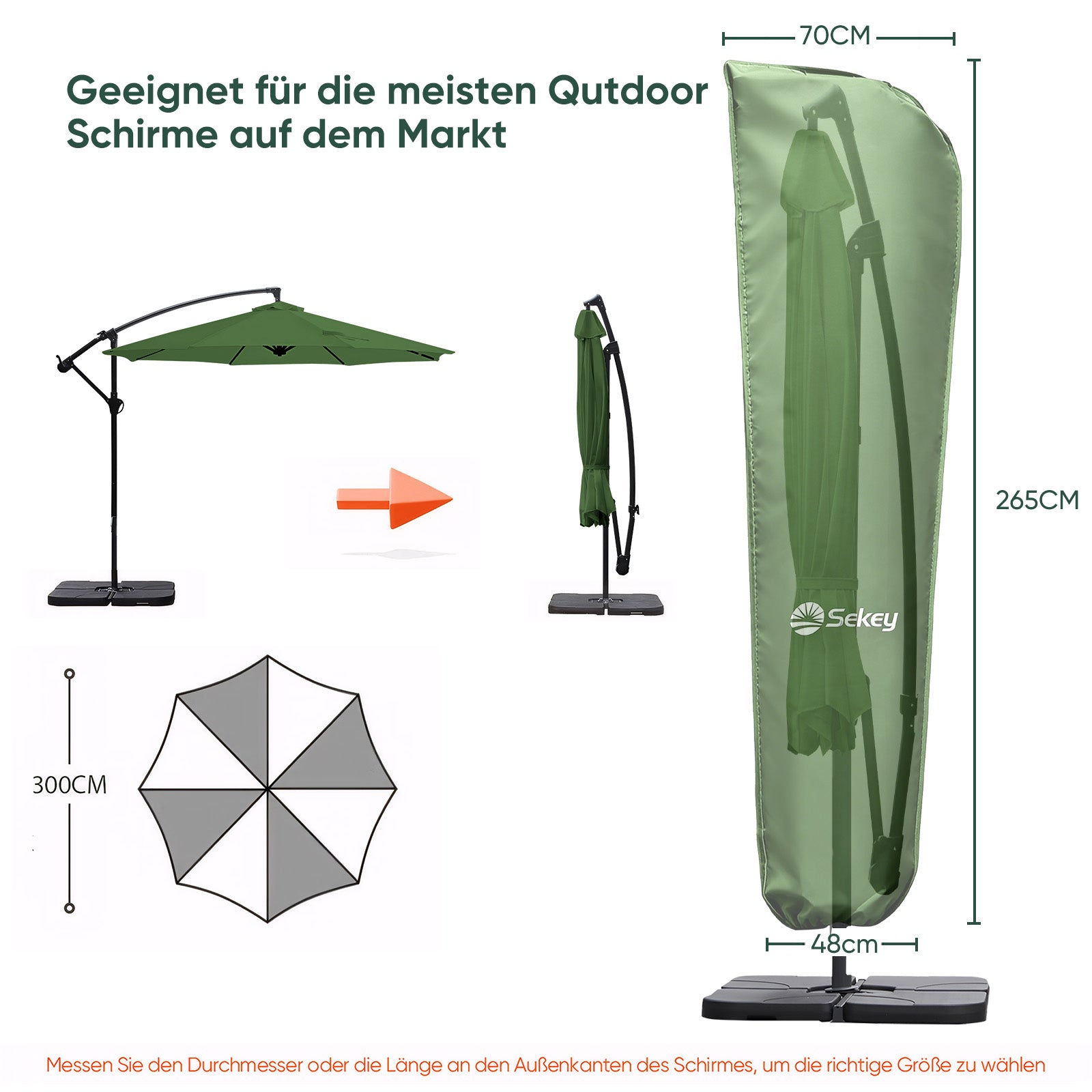 Geeignet für Ampelschirme mit einer Größe von bis 300 cm.