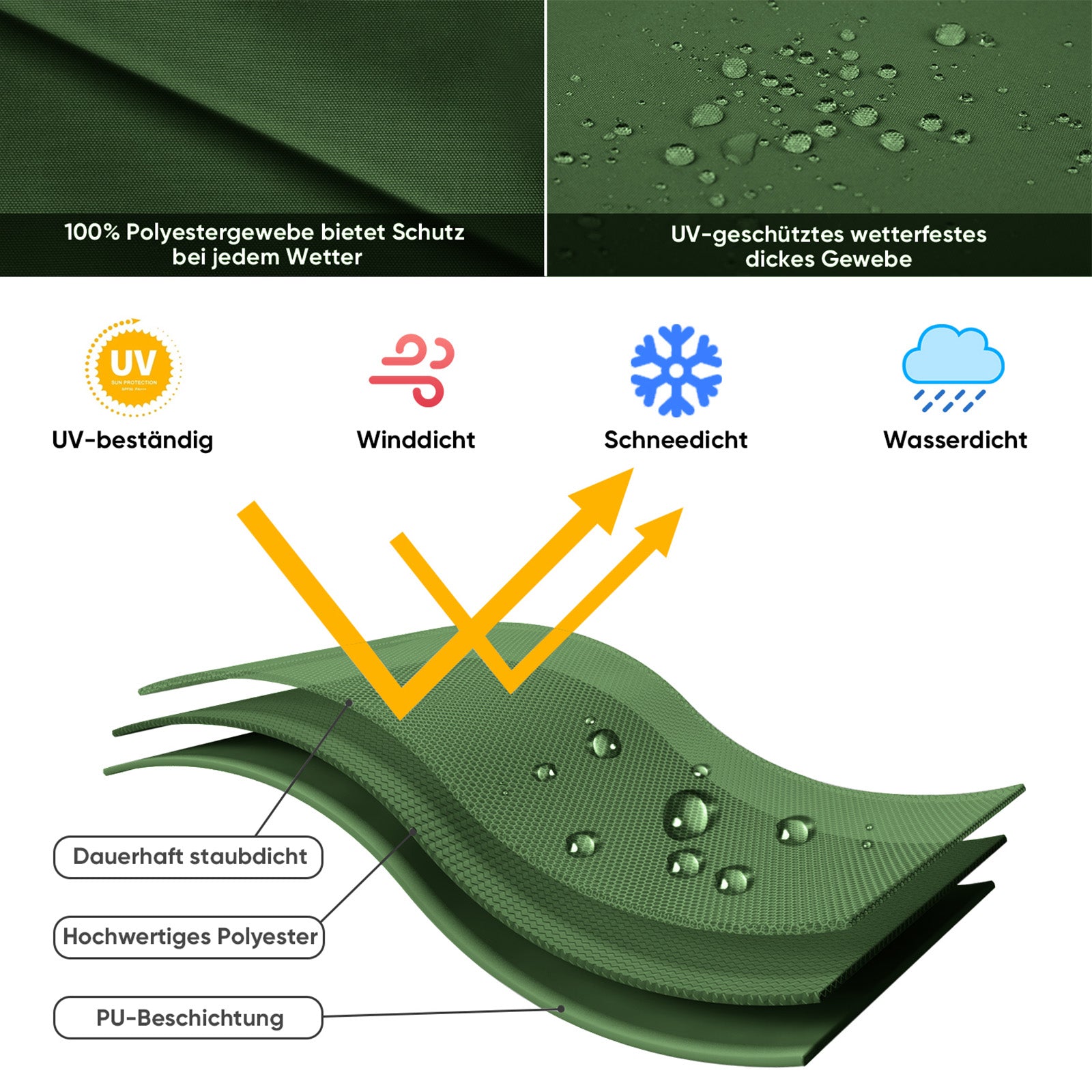 Hochwertiges Material: Unsere Hülle (100% Polyester) ist langlebig, wetterfest und bietet langanhaltenden Schutz vor Wind und Regen.