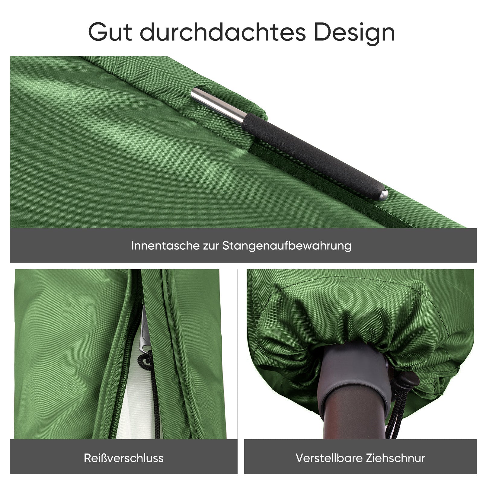 Starke Schutzeigenschaften: Unsere wasserabweisende Hülle schützt Ihren Sonnenschirm vor Regen und bietet hervorragenden UV-Schutz.