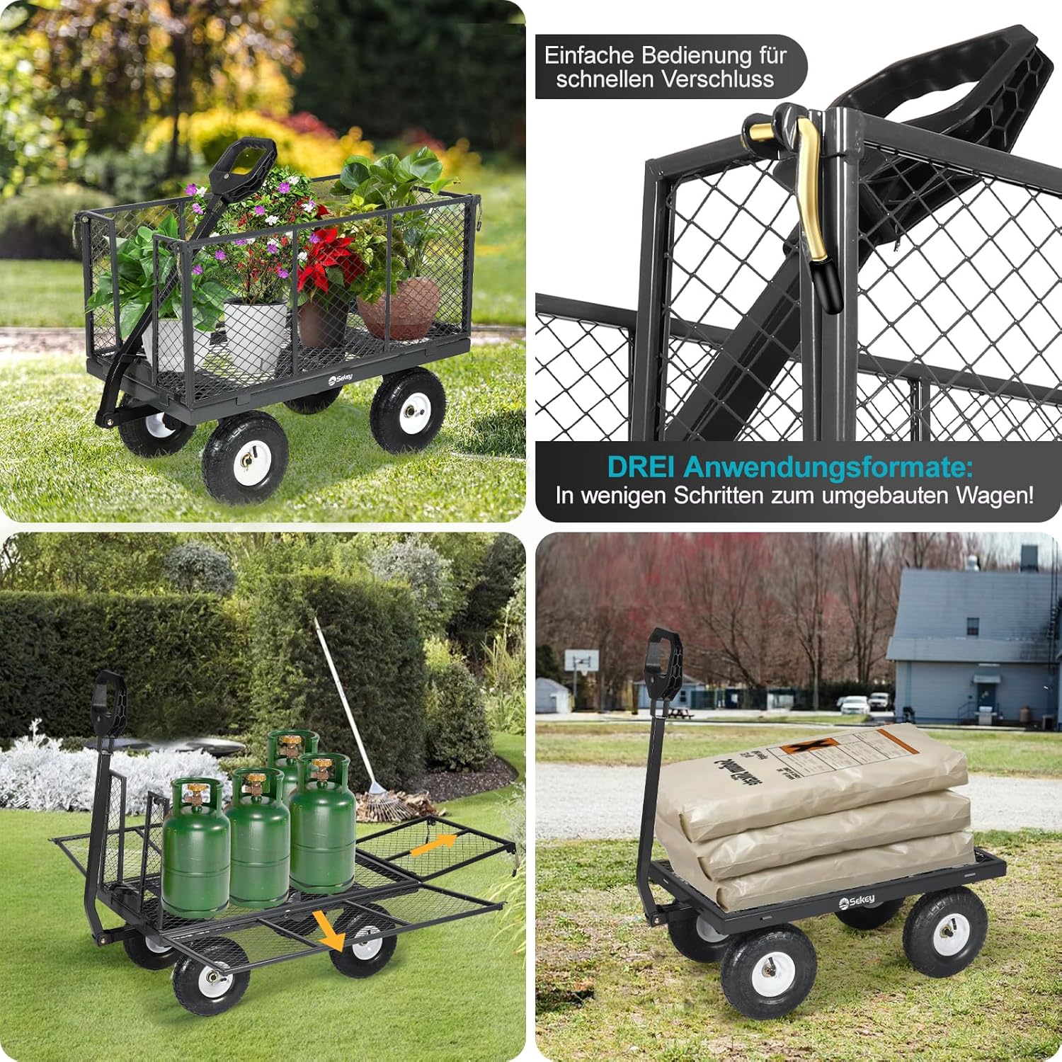 Der neue Sekey 3-in-1 Bollerwagen ist die perfekte Lösung für alle, die einen vielseitigen, stabilen und einfach zu montierenden Transporthelfer suchen. Ob als Gartenwagen, Plattformwagen oder klassischer Transportwagen – dieser Wagen überzeugt mit intelligentem Design, hoher Tragkraft und langer Lebensdauer.