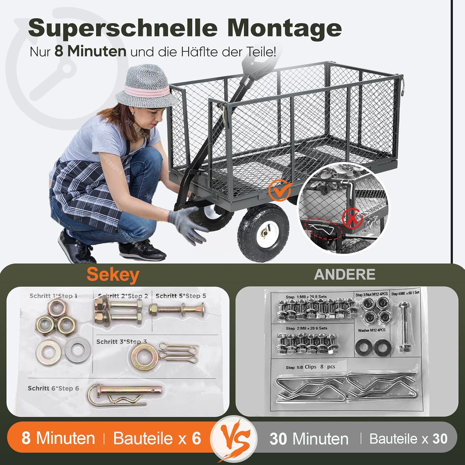 Gartenarbeit, Transport von Pflanzen & Werkzeugen, schwere Einkäufe, Campingausrüstung oder Heimwerkerprojekte – dieser Wagen ist Ihr robuster Alltagsheld.