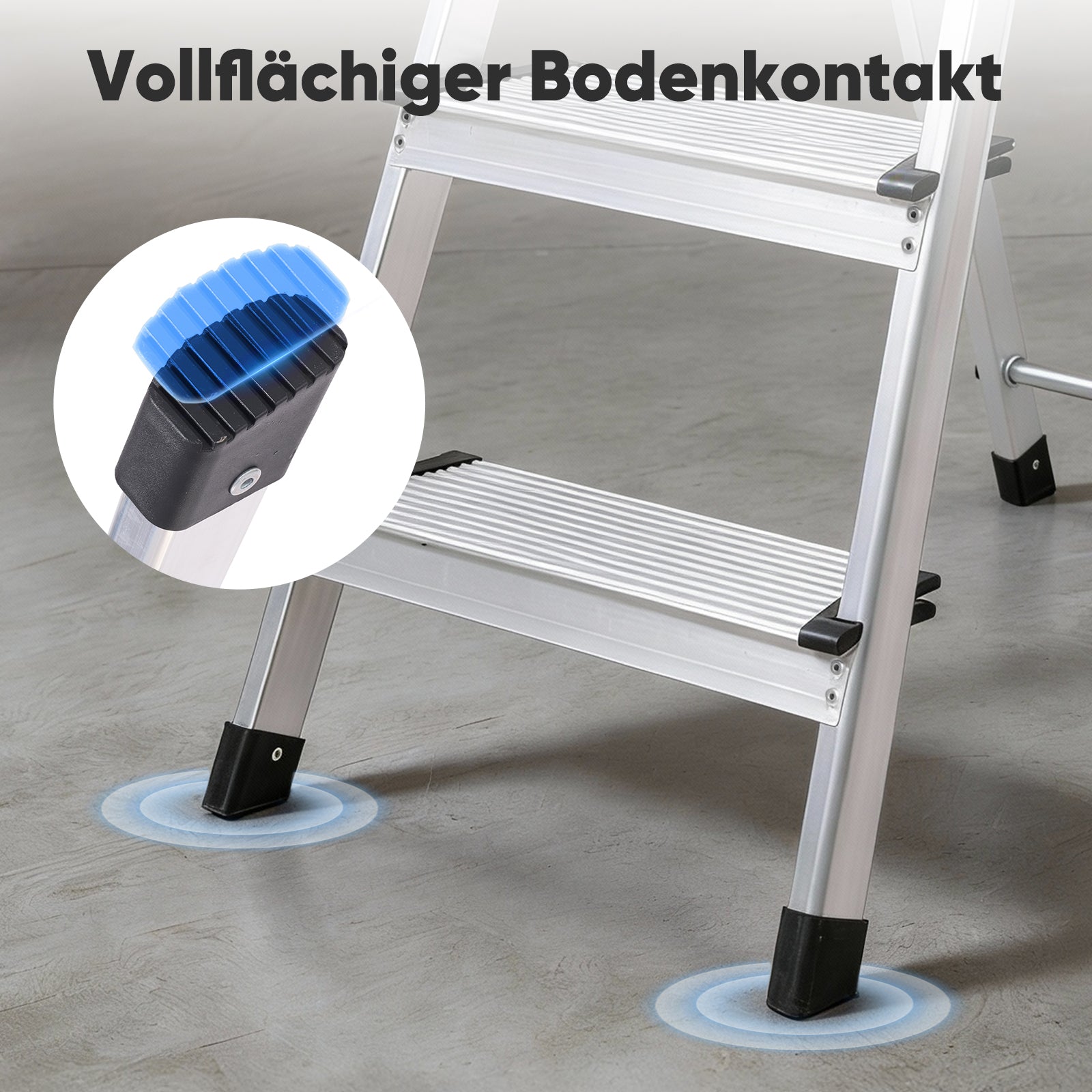 12 cm breite, rutschfeste Trittflächen sorgen für sicheren Stand und Komfort beim Arbeiten. Jede Stufe ist doppelt verschraubt und besonders robust – ideal für den häufigen Einsatz.