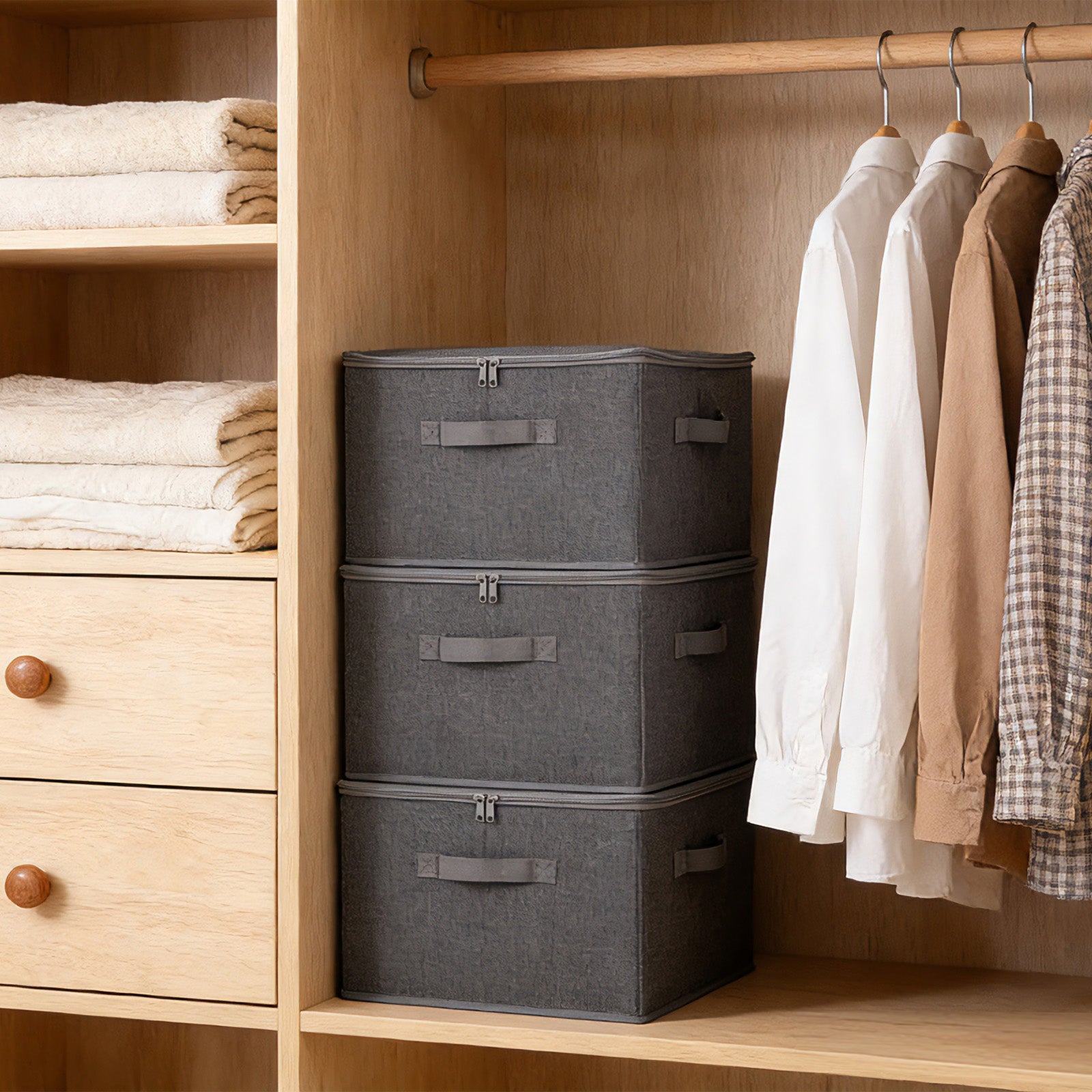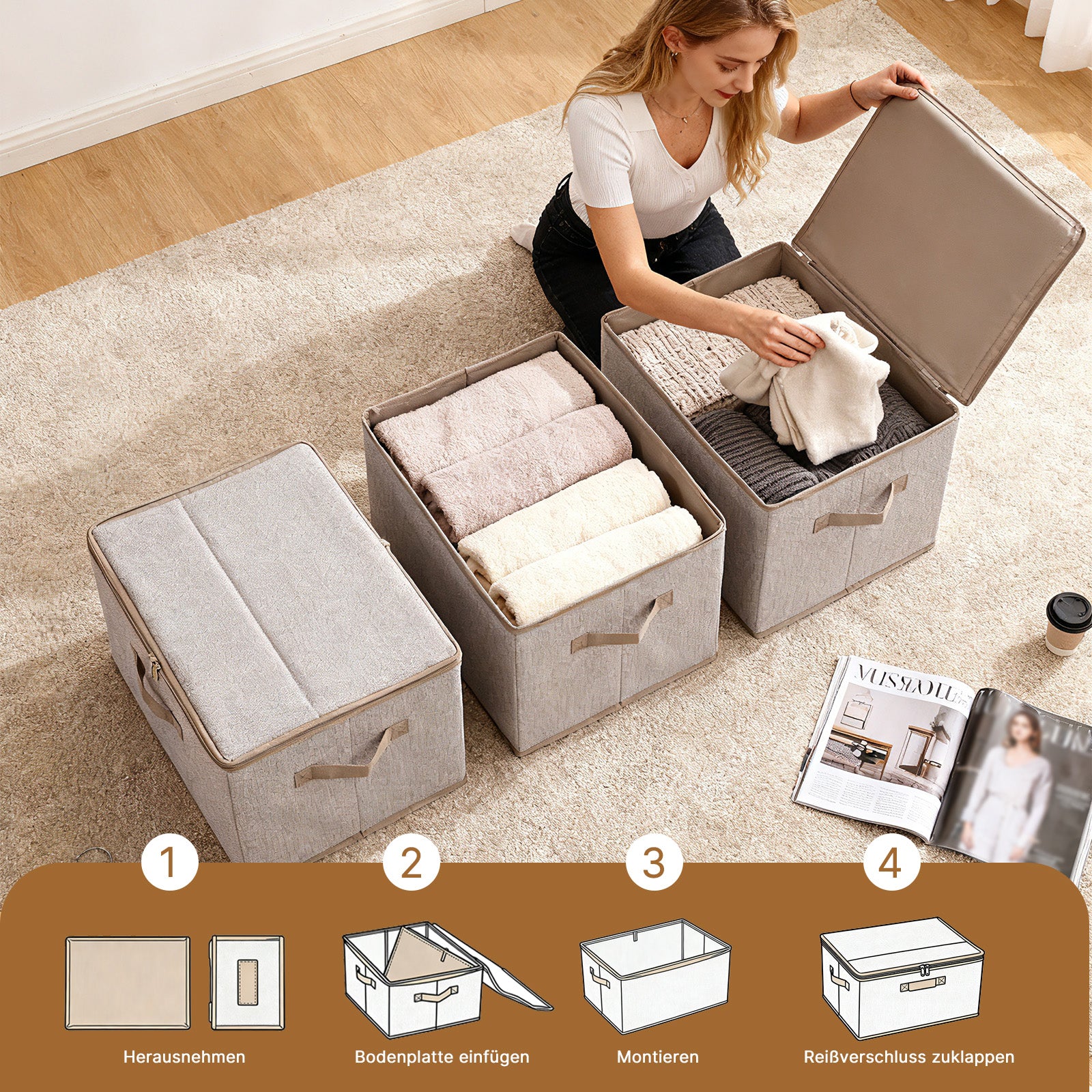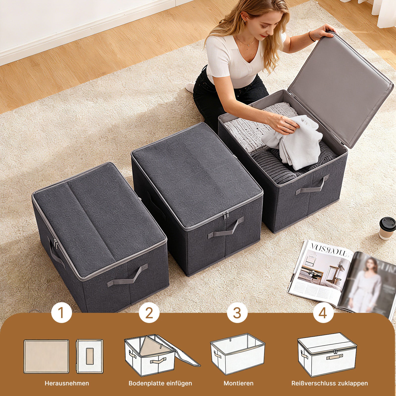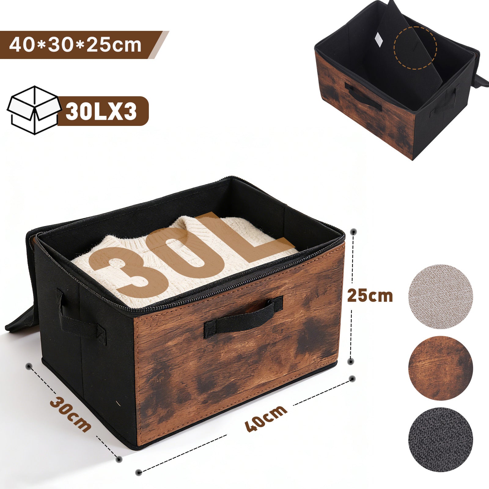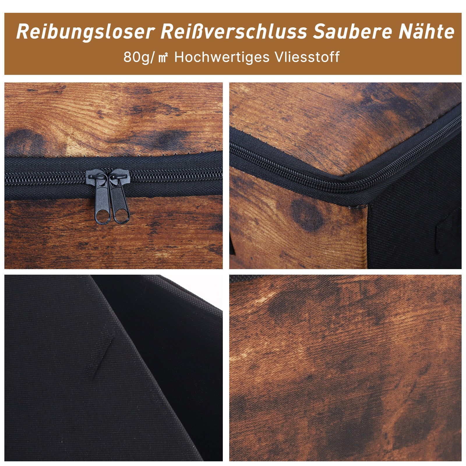 Erhältlich in Anthrazit, Beige oder Holzoptik, fügen sich die Aufbewahrungsboxen harmonisch in unterschiedliche Wohnstile ein. Bei Nichtgebrauch lassen sie sich platzsparend zusammenfalten – für ein aufgeräumtes, strukturiertes Zuhause mit minimalem Aufwand.