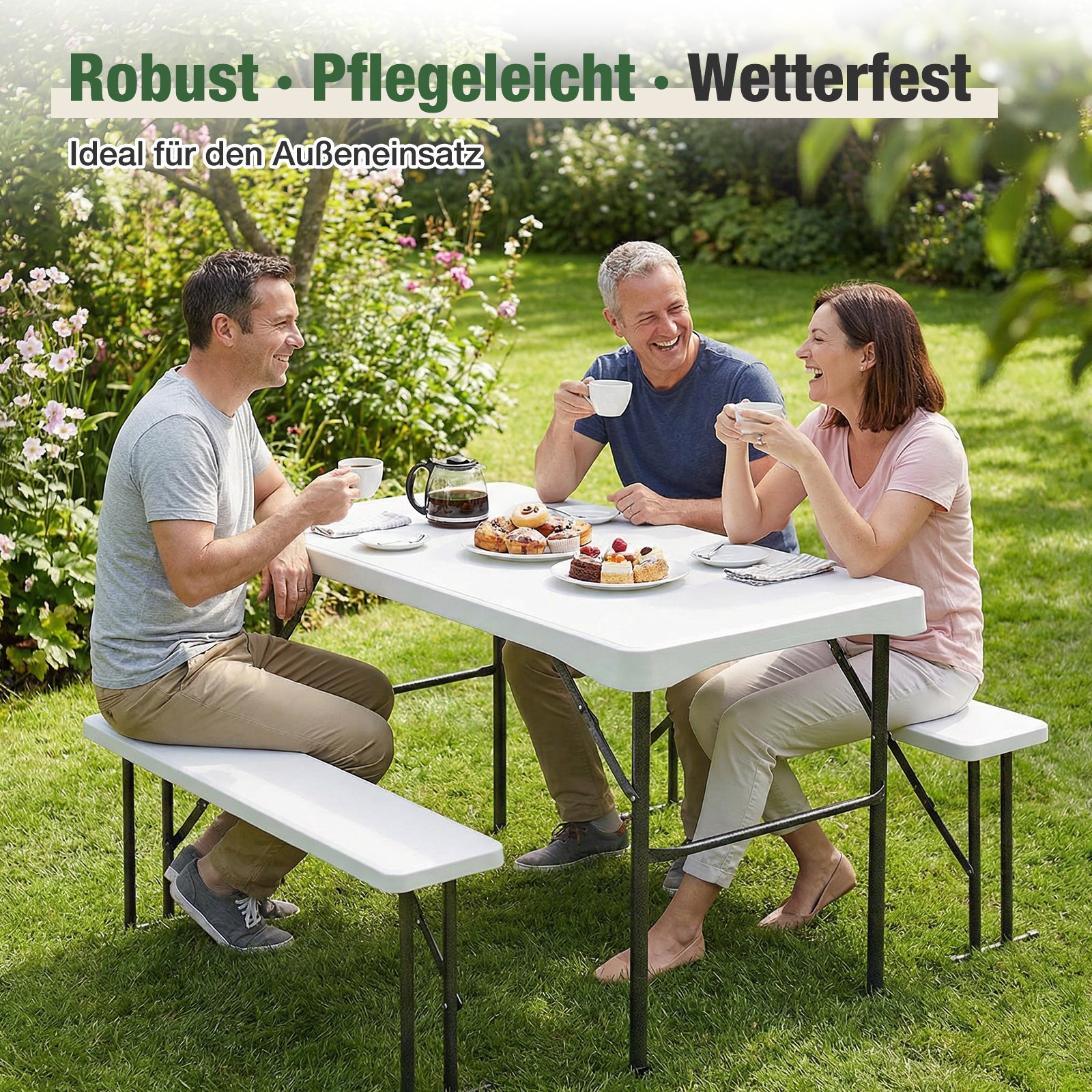 BIERZELTGARNITUR FÜR 4 PERSONEN: Der Biertisch bis zu 150 kg, Bierbänke bis zu 200 kg, ist diese Garnitur genial für Balkon, Camping, kleine Familienessen.