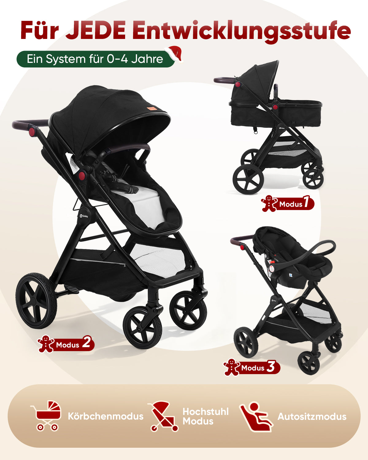 Der Sekey BW600 3-in-1 Kombi-Kinderwagen ist ein flexibles Reisesystem für Kinder von 0–4 Jahren. Mit Babyschale, Liegewanne und Buggy in einem Kinderwagen wächst er mit Ihrem Kind mit und bietet jederzeit maximalen Komfort, Sicherheit und Mobilität.
