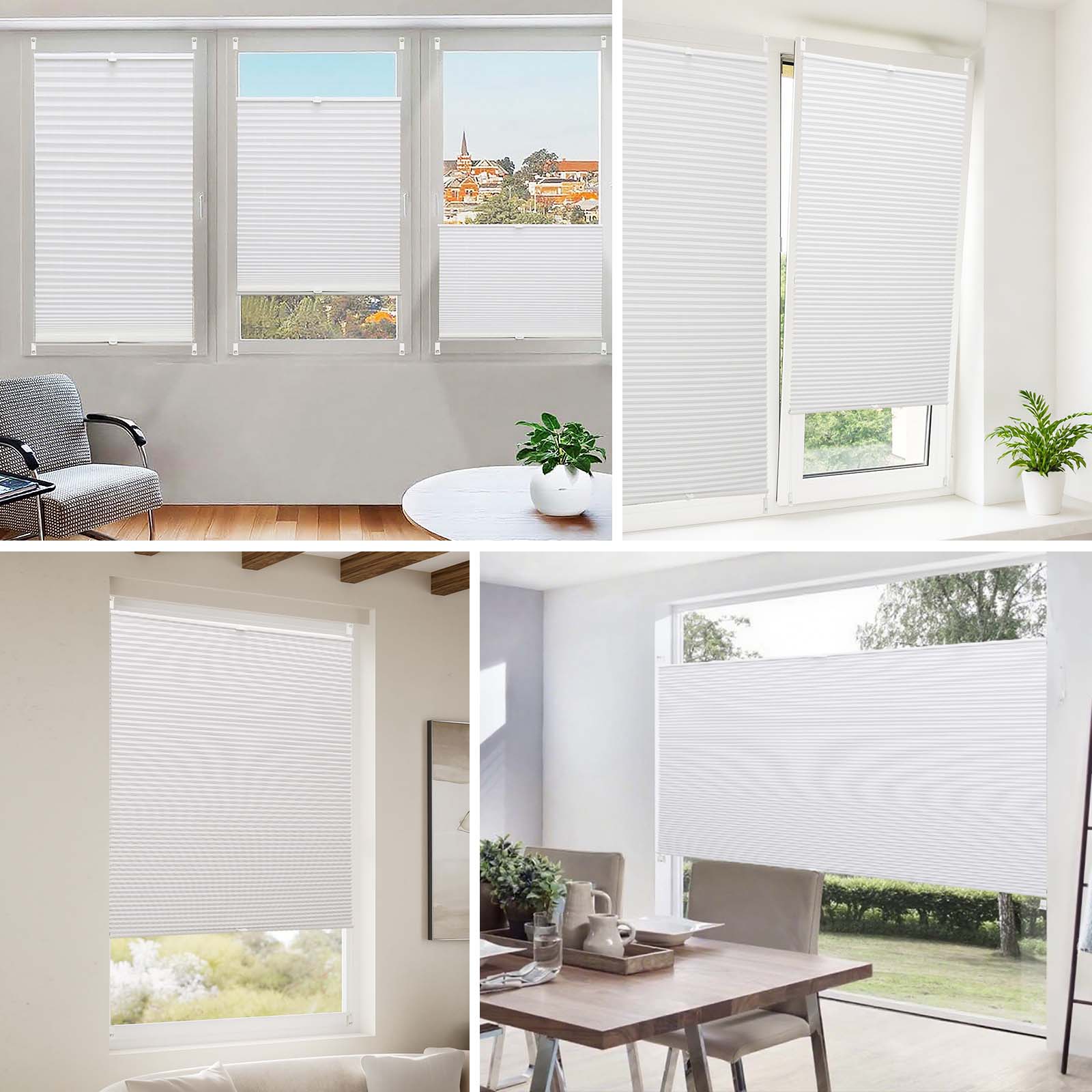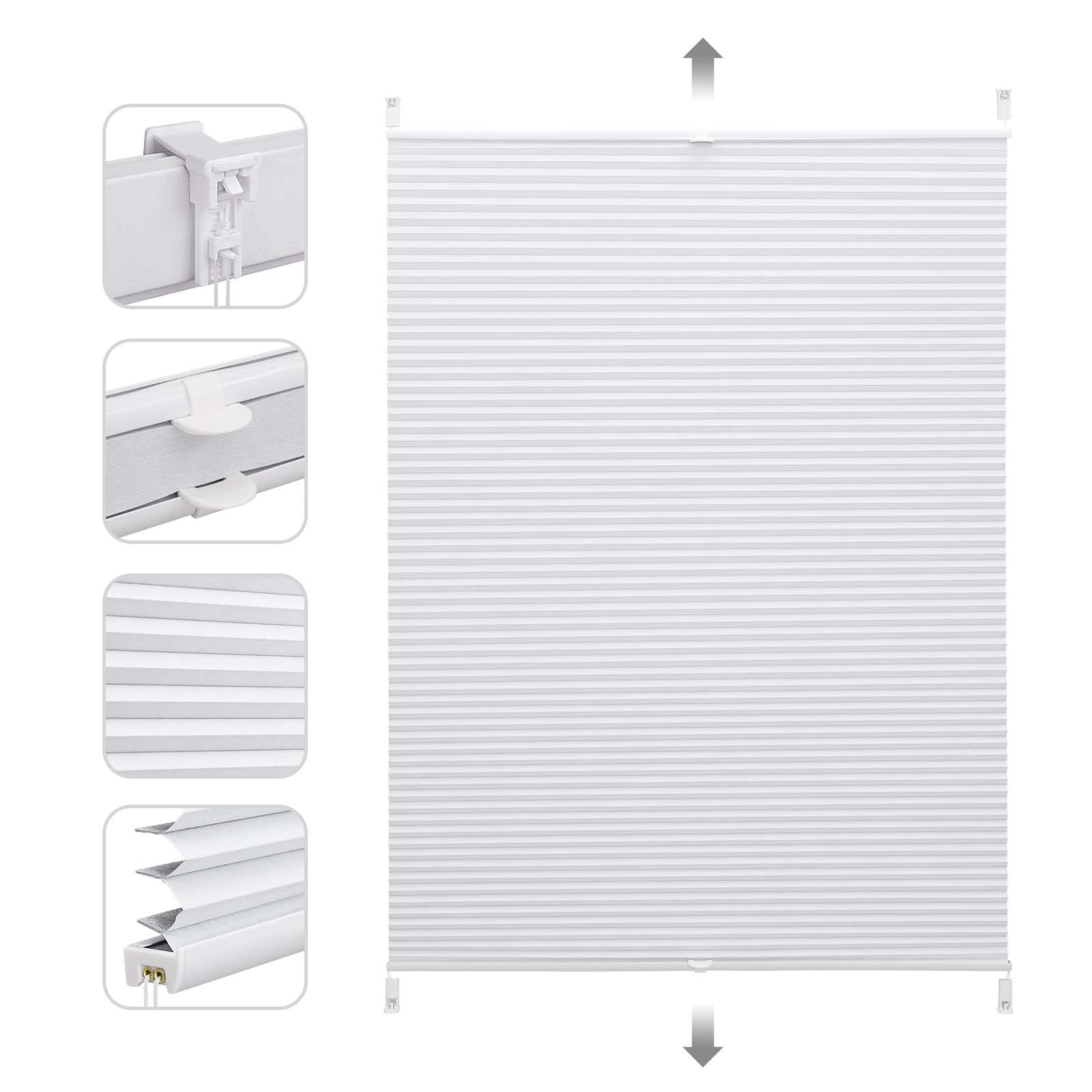 Dank der verstellbaren Klemmhalterungen lässt sich das Plissee schnell und sicher am Fensterrahmen montieren – ganz ohne Bohren oder Beschädigung. Alternativ ist auch eine Montage mit Bohren möglich. Die Bedienung von oben und unten ermöglicht eine individuelle Regulierung von Licht und Sicht, angepasst an Tageszeit und Bedarf.