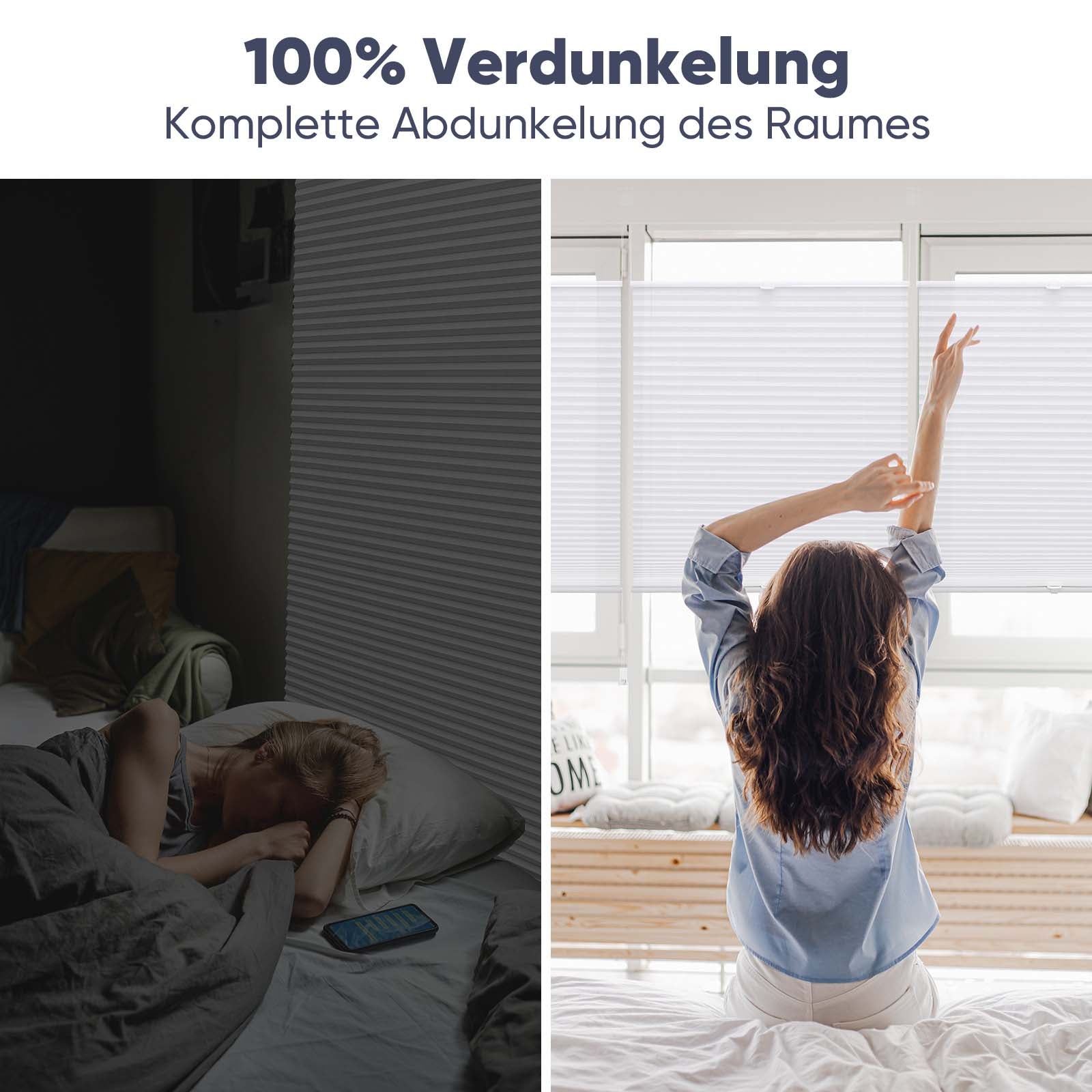 Das Sekey Verdunkelungsplissee ohne Bohren überzeugt durch ein besonders elegantes, nahtloses Design und eine verbesserte Abdunkelungsleistung. Die glatte Vorderseite ohne sichtbare Schnur- oder Durchfädelöffnungen sorgt nicht nur für eine moderne Optik, sondern reduziert auch den seitlichen Lichteinfall deutlich – ideal für mehr Privatsphäre und erholsamen Schlaf.