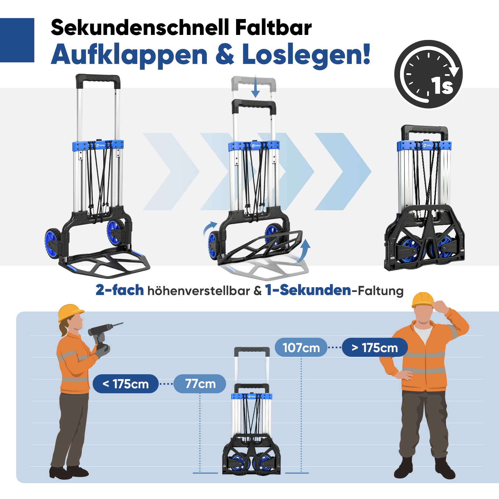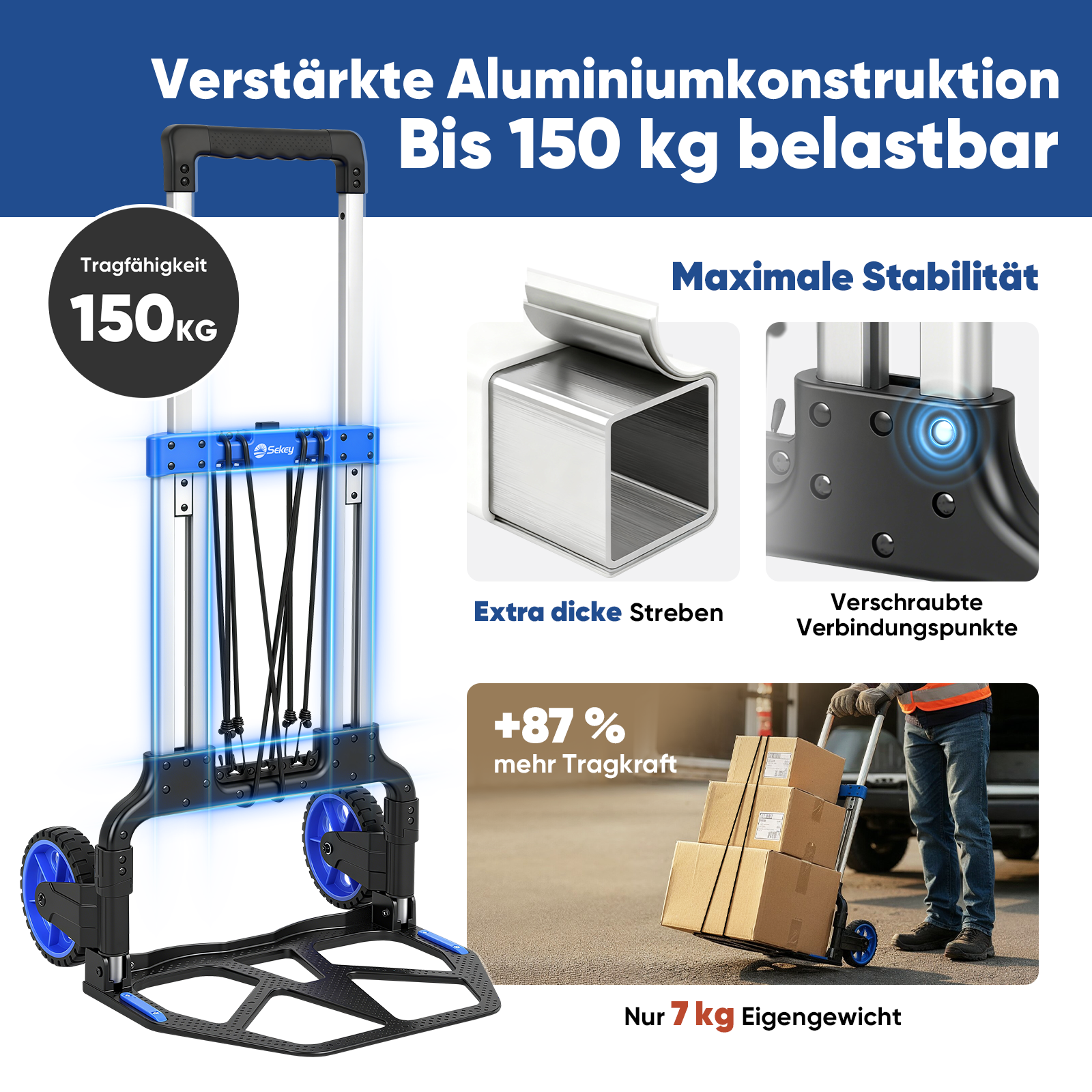 Die Sekey Klappbare Sackkarre 150 kg ist die ideale Lösung für alle, die maximale Stabilität, hohe Tragkraft und zuverlässige Mobilität benötigen – ob im Haushalt, im Lager, auf der Baustelle oder beim Umzug. Dank verstärkter Konstruktion, großer Plattform und komfortabler Bedienung ist sie für professionelle wie private Einsätze bestens geeignet.
