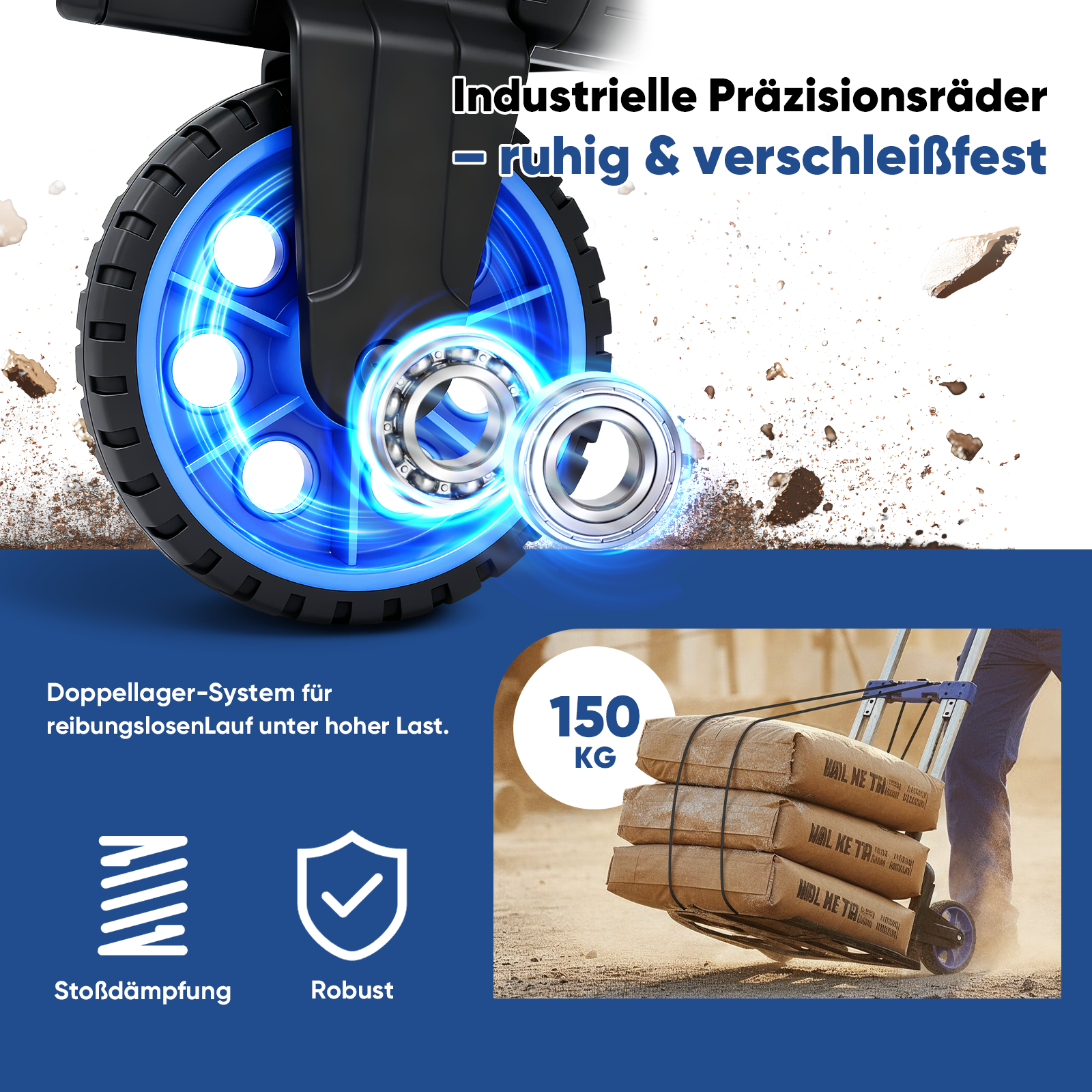 Die extra stabilen Aluminiumstreben, verschraubten Verbindungspunkte und die verstärkte Rahmenstruktur bieten +87 % mehr Tragkraft – bei nur 7 kg Eigengewicht. Perfekt für schwere Lasten wie Werkzeugkisten, Möbel, Pakete oder Baustoffe.