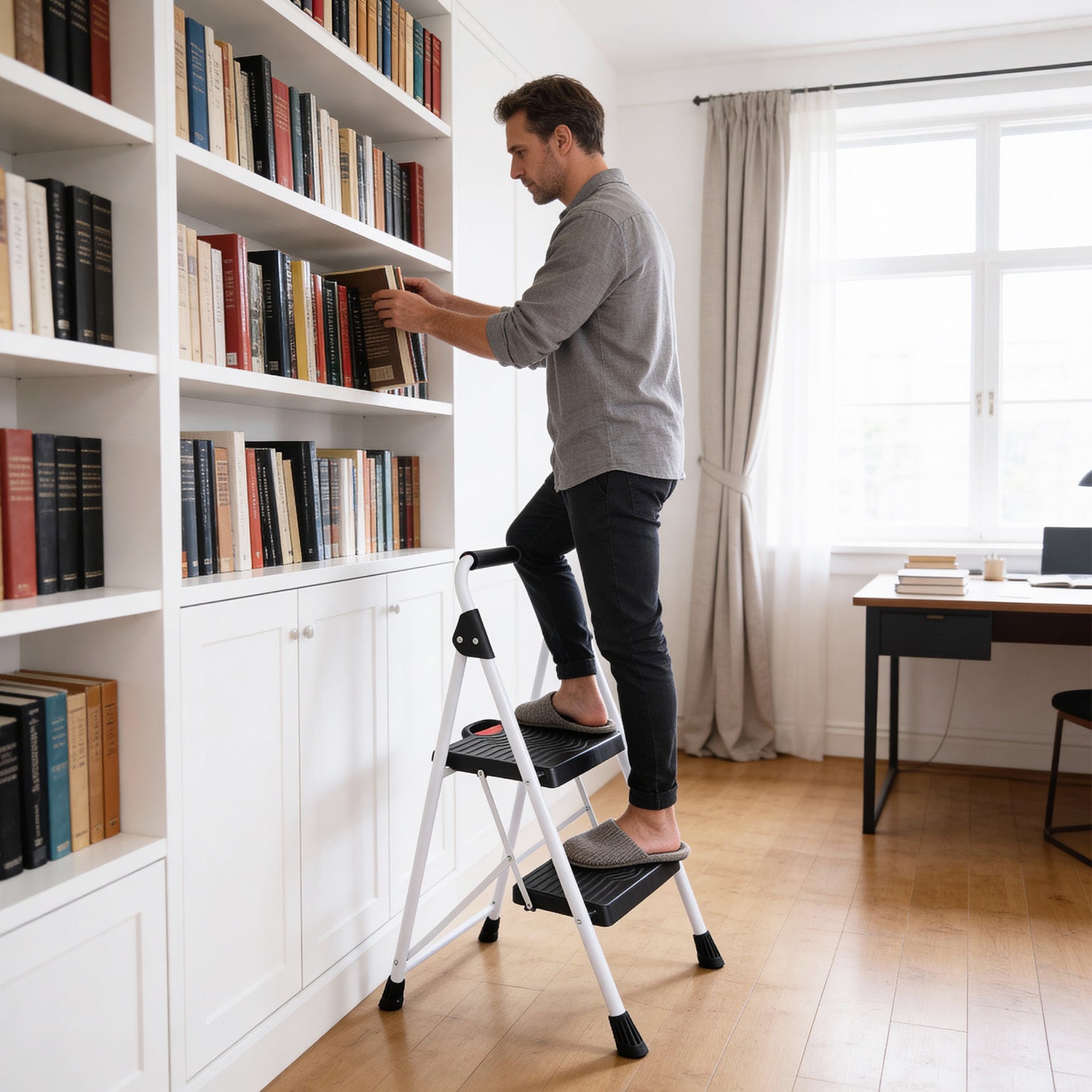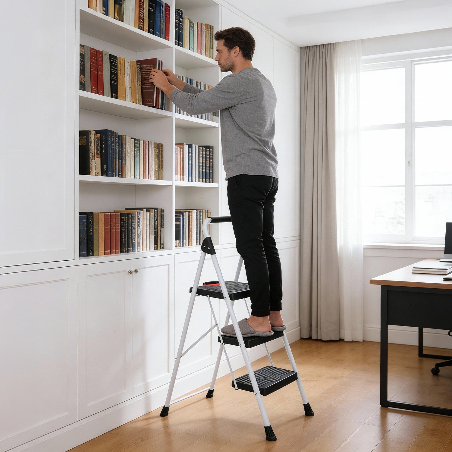 Die Sekey klappbare Trittleiter mit 2 oder 3 Stufen wurde speziell für den sicheren Einsatz im Haushalt entwickelt. Ob Küche, Vorratsraum oder Abstellraum – sie kombiniert hohe Stabilität, komfortable Trittflächen und ein platzsparendes Klappdesign.