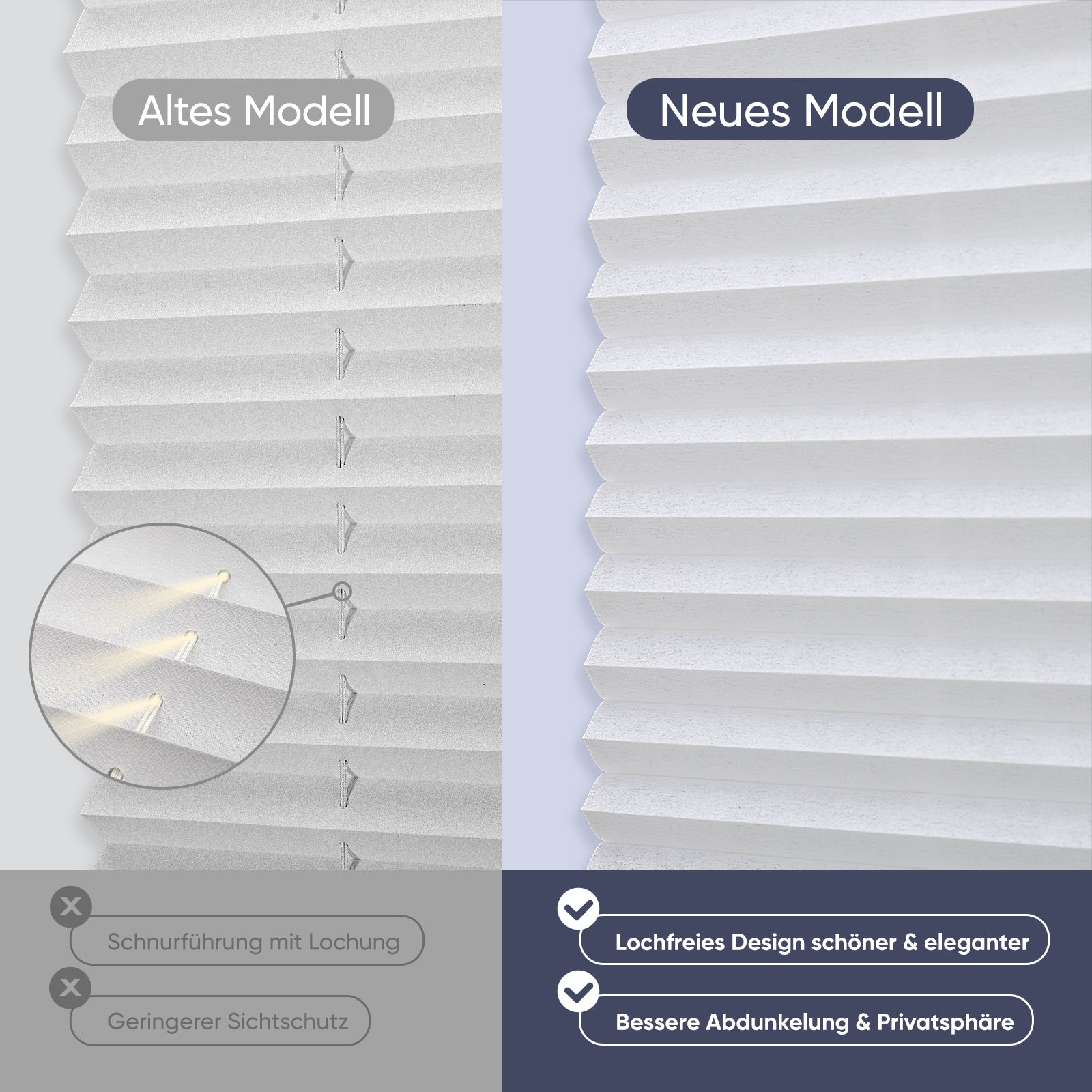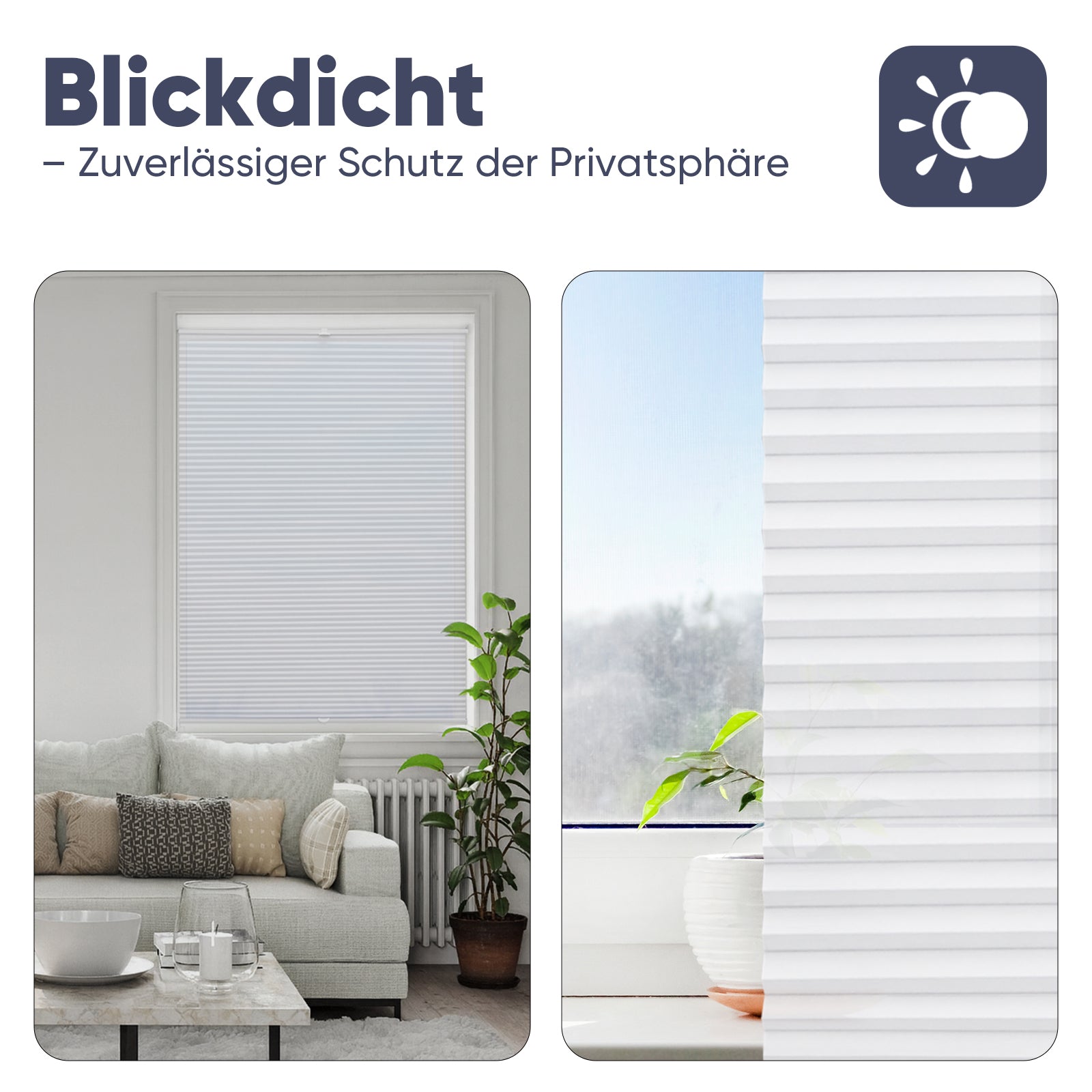 Das Sekey blickdichte Plissee ohne Bohren bietet zuverlässigen Sichtschutz bei gleichzeitig angenehmem Tageslichteinfall. Die glatte Vorderseite ohne sichtbare Schnurlöcher sorgt für ein ruhiges, modernes Erscheinungsbild und verhindert störende Lichtpunkte auf der Stoffoberfläche.