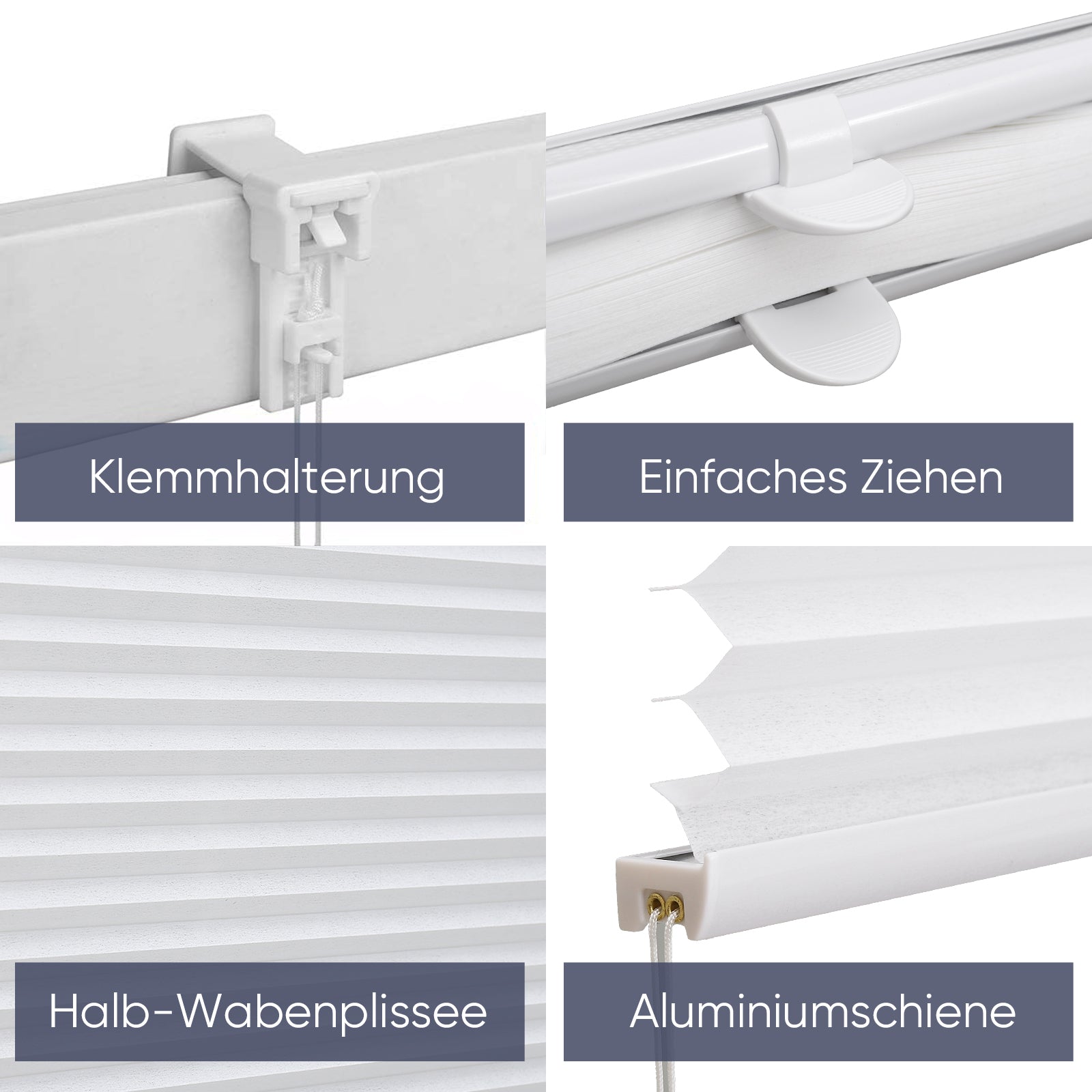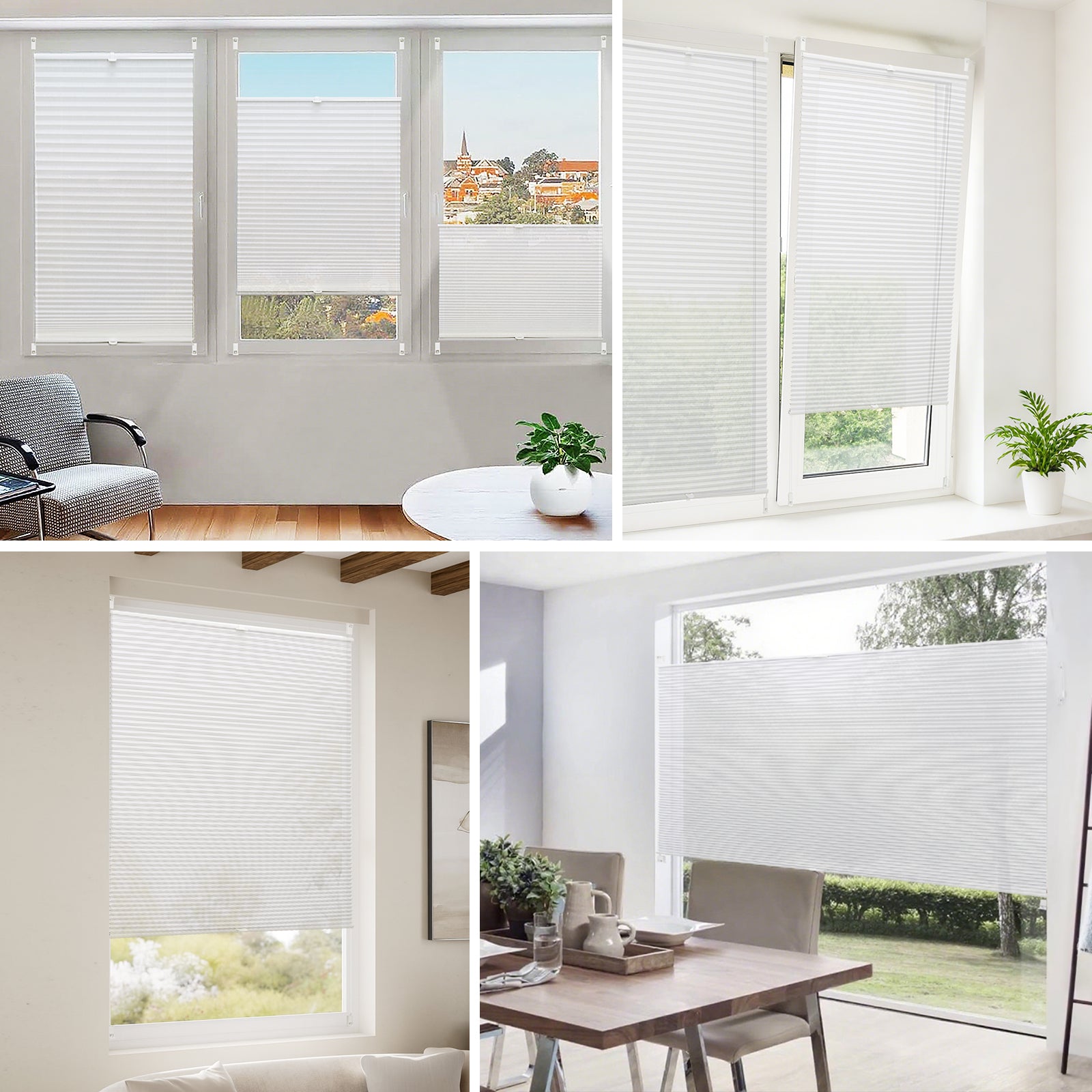 Dank der verstellbaren Klemmhalterungen lässt sich das Plissee schnell und stabil am Fensterrahmen montieren – ganz ohne Bohren oder Schrauben. Die flexible Bedienung von oben und unten ermöglicht es, Licht und Privatsphäre individuell an die jeweilige Raumsituation anzupassen.