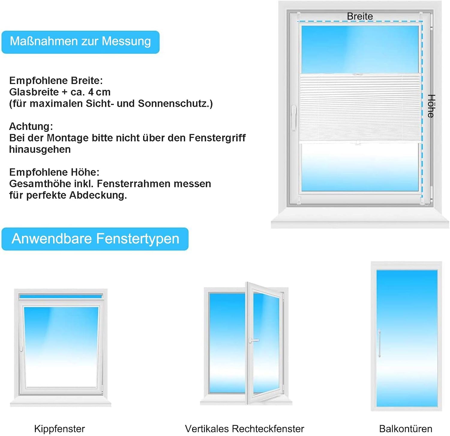 Das Plissee ist von oben und unten frei verstellbar und ermöglicht eine flexible Regulierung des Lichteinfalls je nach Bedarf. Gefertigt aus 100 % Polyester mit stabilen Aluminiumschienen ist der Stoff langlebig, formstabil und widerstandsfähig gegen Sonneneinstrahlung. Gleichzeitig blockiert das Material einen Großteil der UV-Strahlung und schützt zuverlässig vor direkter Sonne.