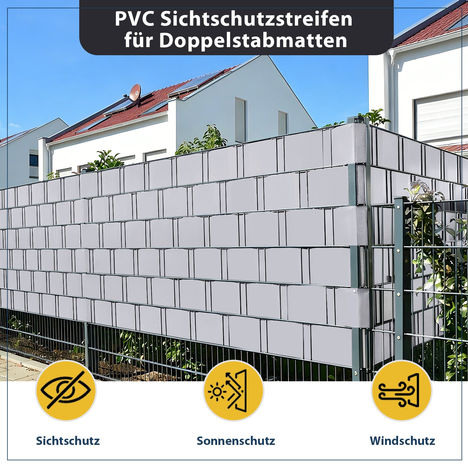 Mit den Sekey PVC Sichtschutzstreifen verwandeln Sie Ihren Doppelstabmattenzaun schnell in einen modernen und funktionalen Sichtschutz – ideal für mehr Privatsphäre und eine stilvolle Gartengestaltung.