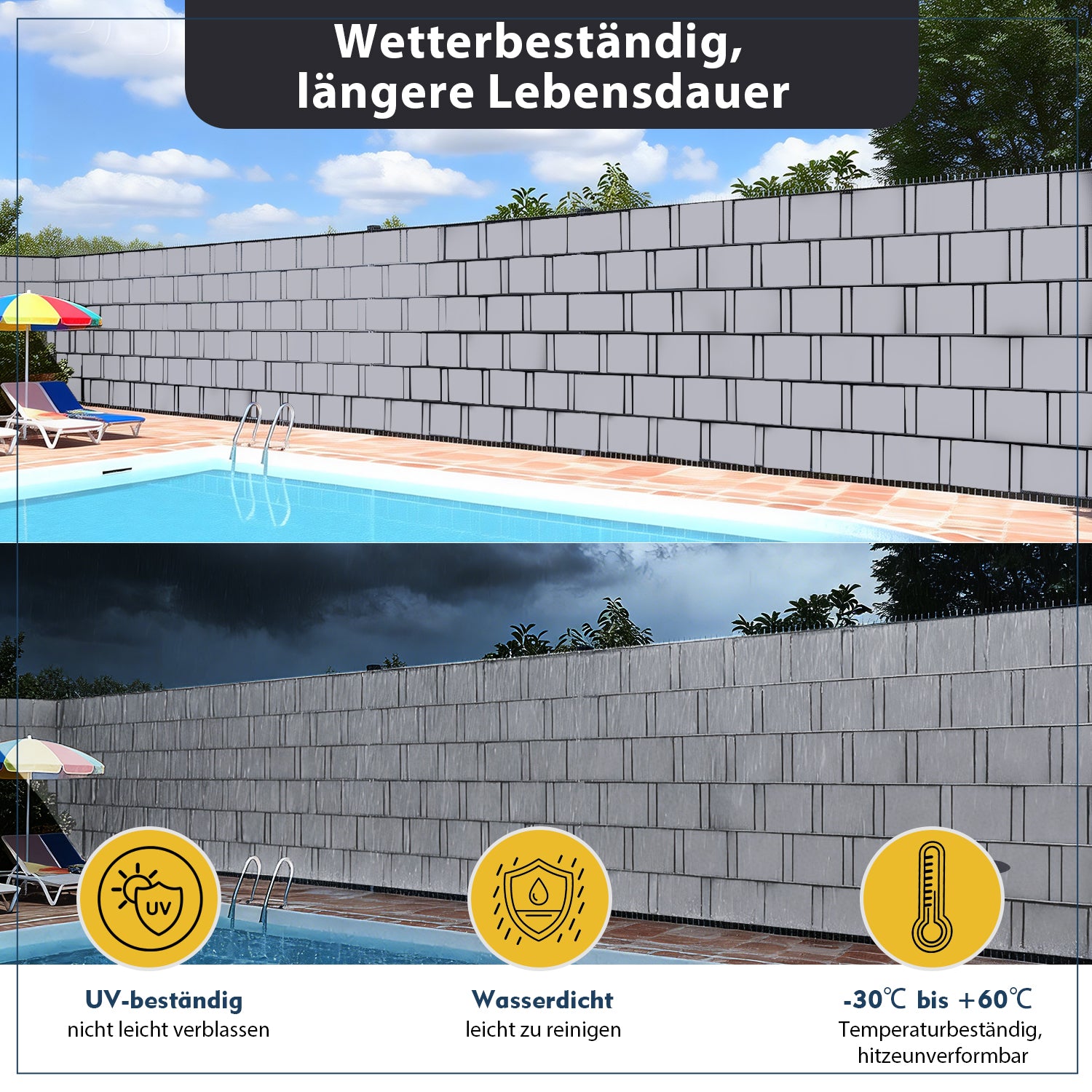 Die Sichtschutzstreifen sind UV-beständig und farbecht (Farbechtheitsgrad 7) und behalten ihre Farbe auch bei längerer Sonneneinstrahlung. So bleibt Ihr Gartenzaun dauerhaft gepflegt und optisch ansprechend.