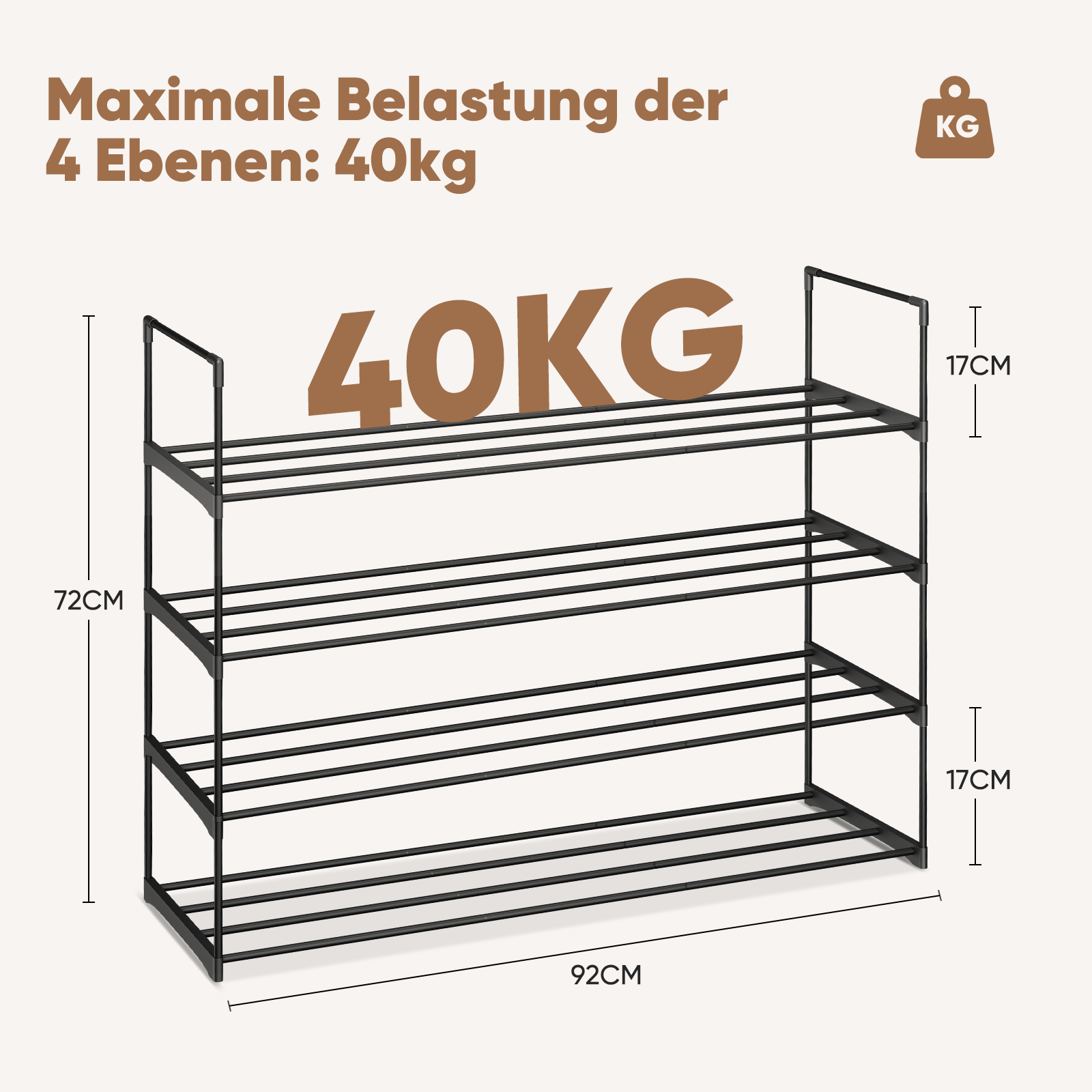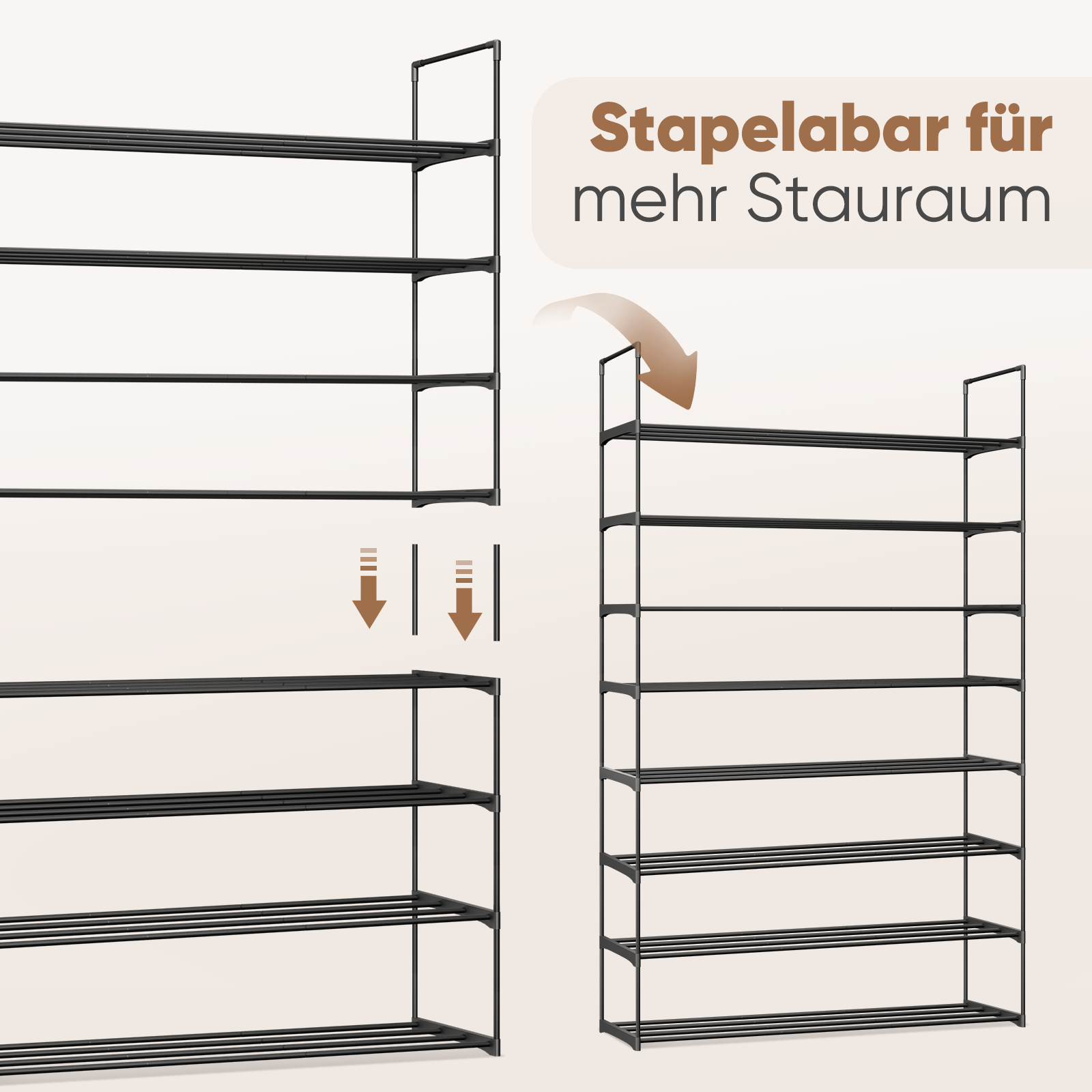 Pro Ebene finden bis zu 4 Paar Sportschuhe oder 5–6 Paar flache Schuhe bequem ihren Platz – ideal für Familien oder große Schuhsammlungen.