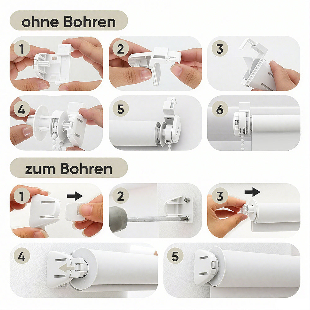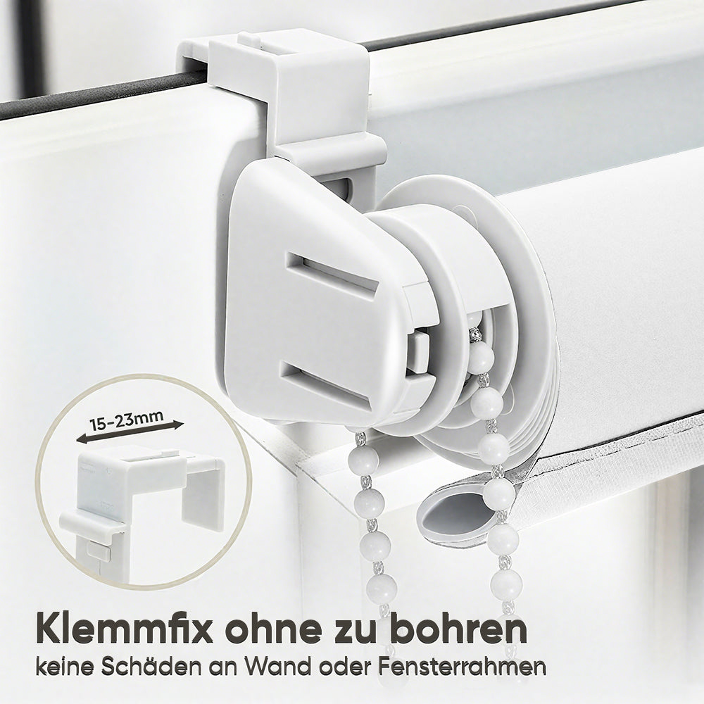 Bohrfreie Montage: Klemmfix-System ohne Bohren, passend für Fensterrahmen von 15–23 mm, einfach festklemmen – Fenster bleiben unbeschädigt.