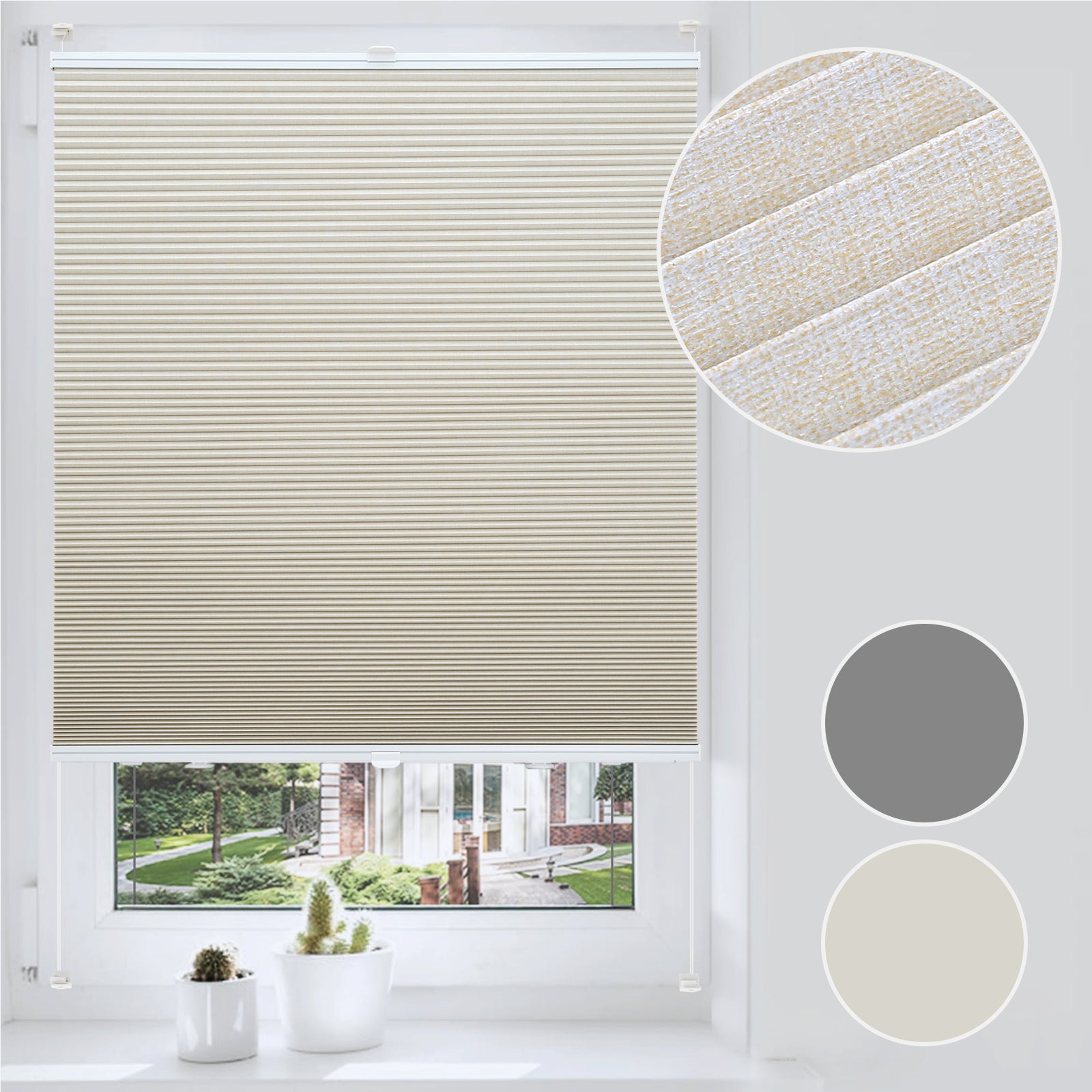 Das Plissee besteht aus 100 % Polyester mit Aluminiumfolie und hochwertigen Aluminiumschienen.