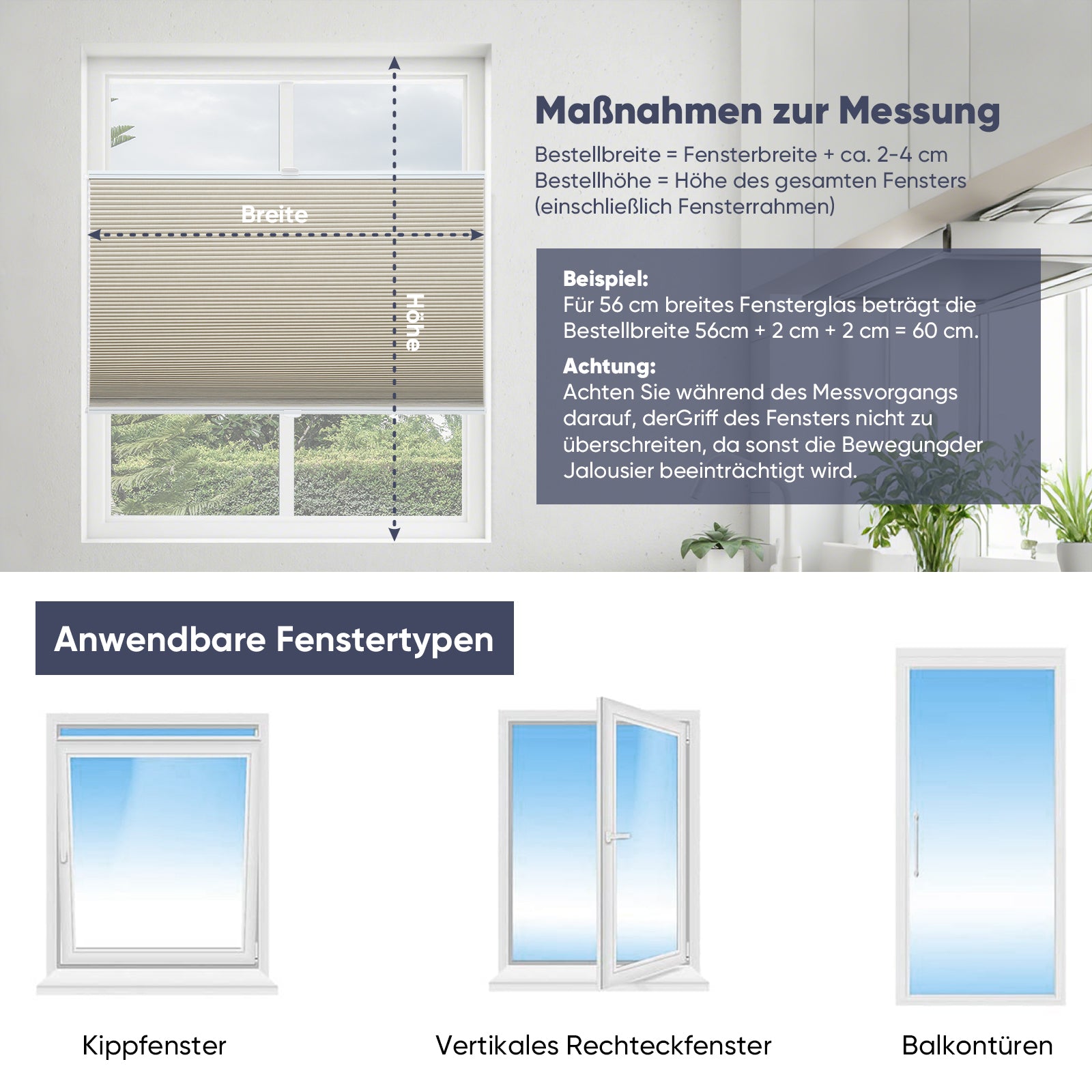 Achten Sie bei der Montage auf Fenstergriffe oder andere hervorstehende Beschläge.