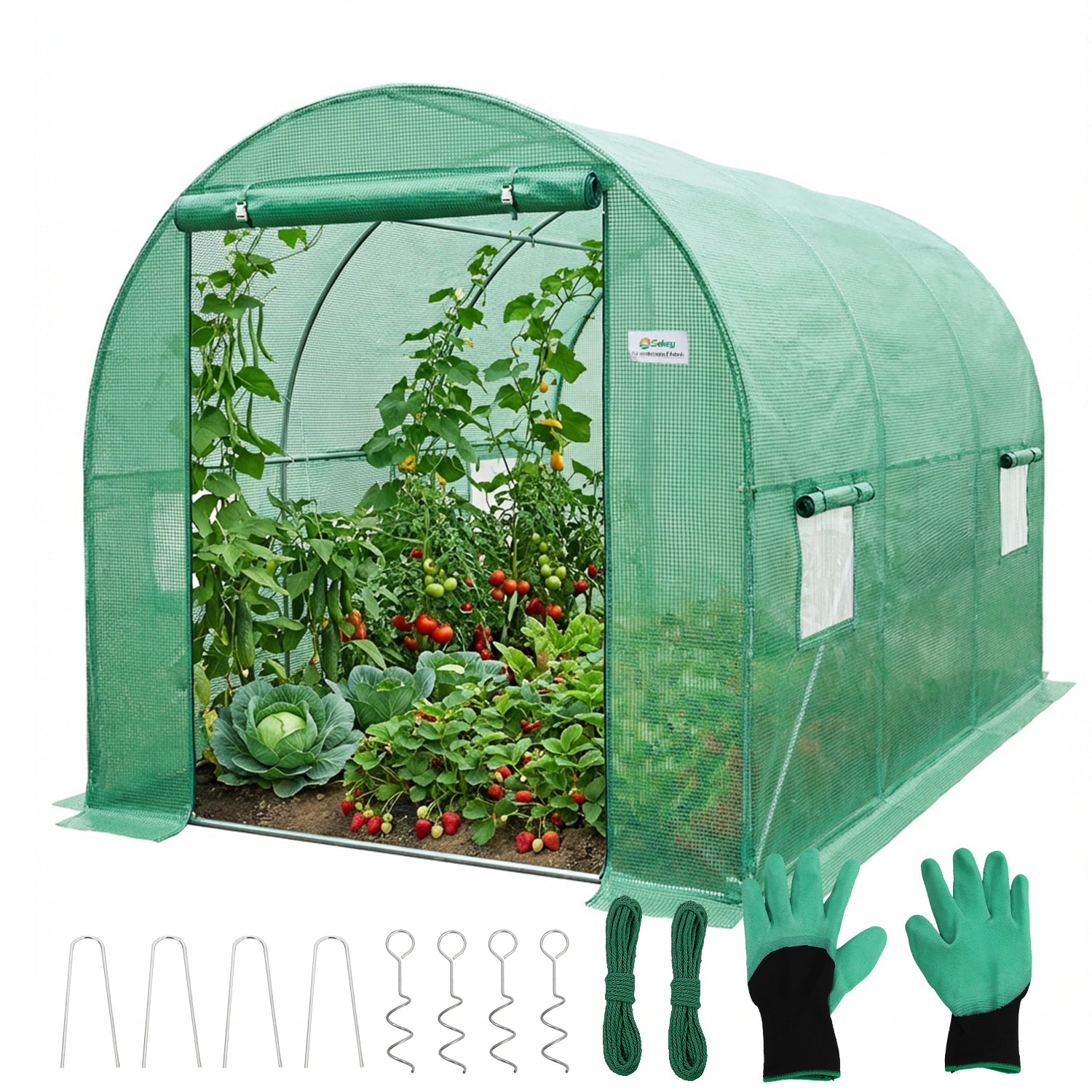 Das Sekey winterfeste Foliengewächshaus 3×2×2 m ist die ideale Lösung für Hobbygärtner, die auf begrenztem Raum optimale Wachstumsbedingungen schaffen möchten. Mit 6 m² Nutzfläche und einer komfortablen Stehhöhe von 2 Metern eignet sich dieses begehbare Treibhaus perfekt für Tomaten, Gurken, Paprika und andere hochwachsende Pflanzen.
