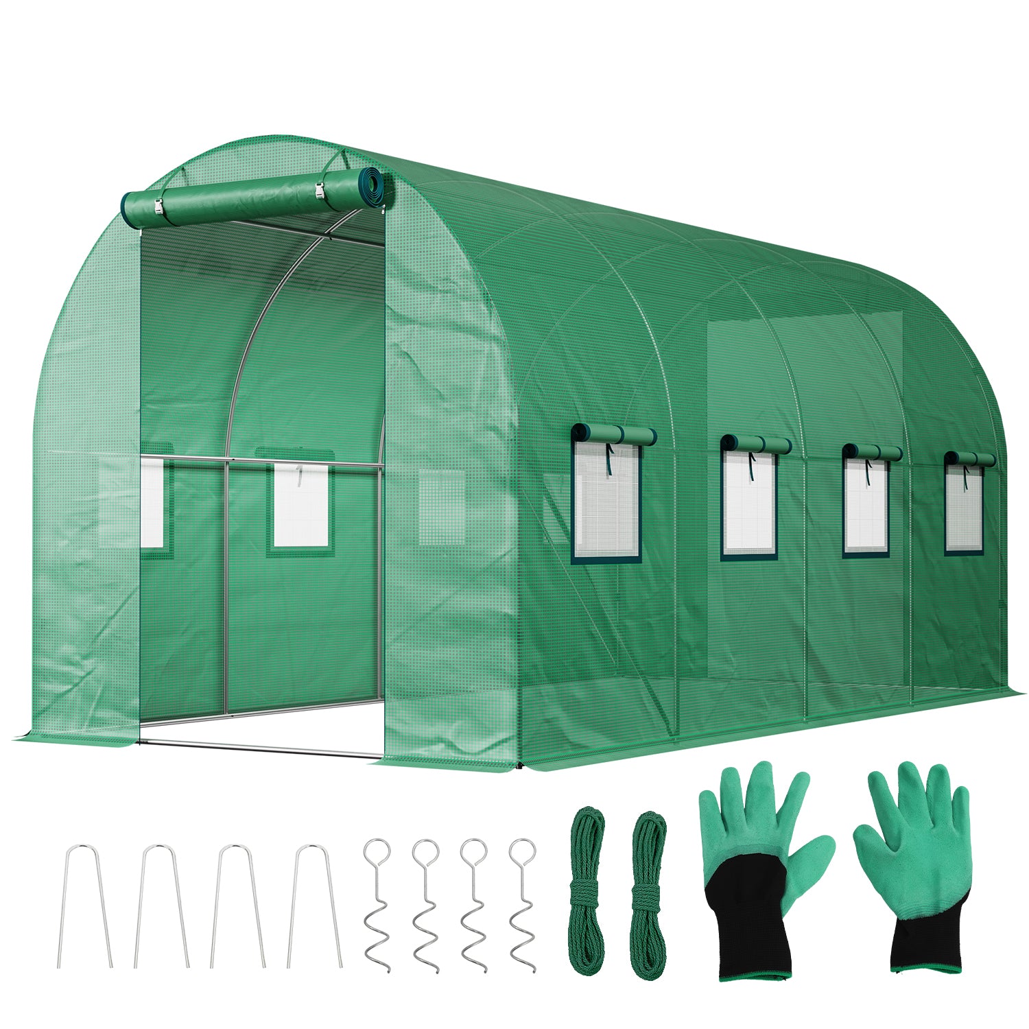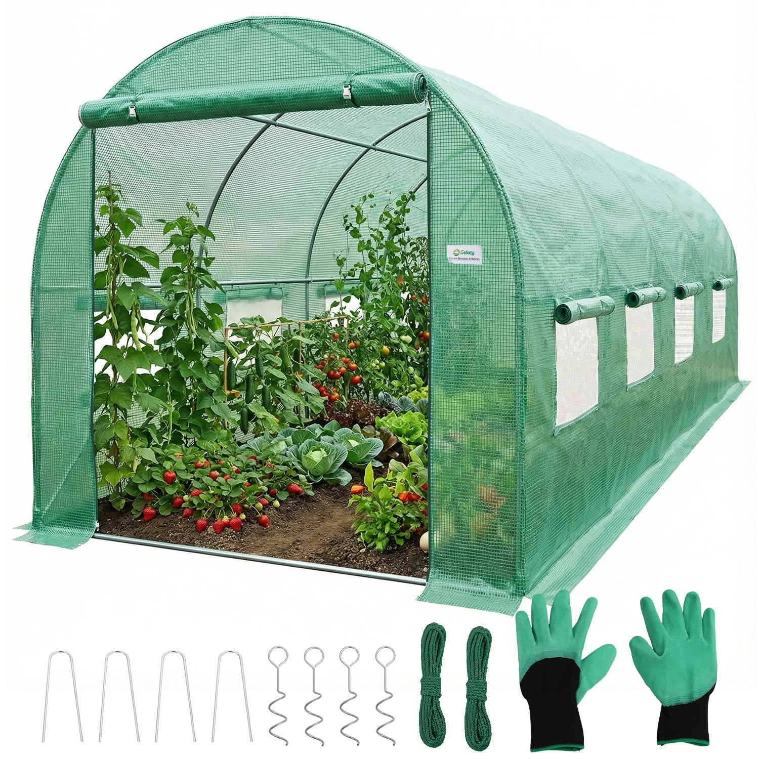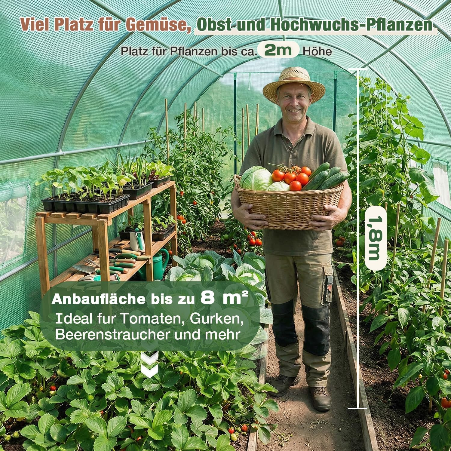 Das Sekey winterfeste Foliengewächshaus 4×2×2 m bietet optimale Bedingungen für den ganzjährigen Anbau von Gemüse, Kräutern und hochwachsenden Pflanzen. Mit 8 m² Nutzfläche und einer komfortablen Stehhöhe von 2 Metern ist dieses begehbare Treibhaus ideal für Tomaten, Gurken und andere Rankpflanzen.