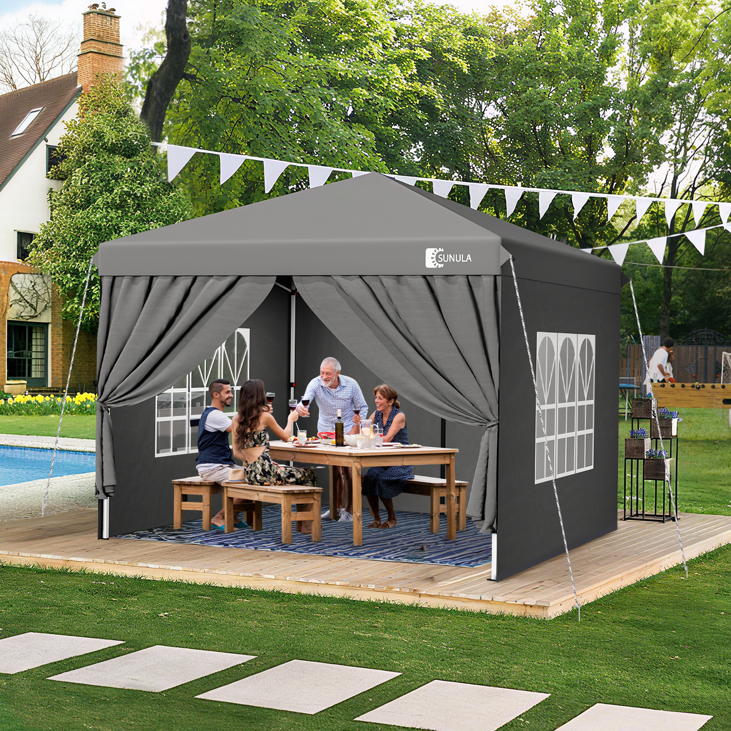 Der Sunula Pavillon 3×3 m ist die ideale Lösung für alle, die einen stabilen, wetterfesten und schnell aufgebauten Faltpavillon für Garten, Camping, Festivals oder Partys suchen.